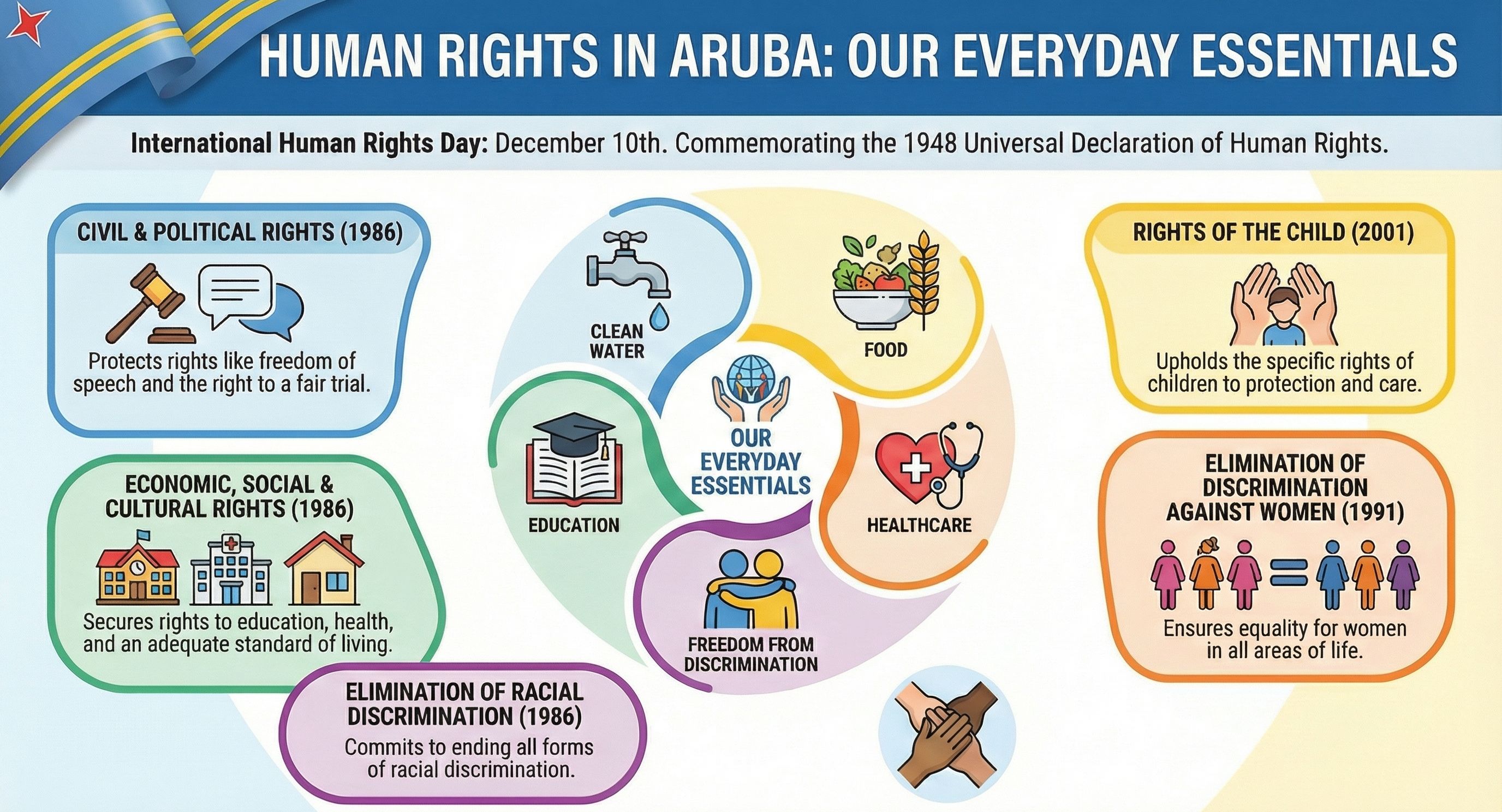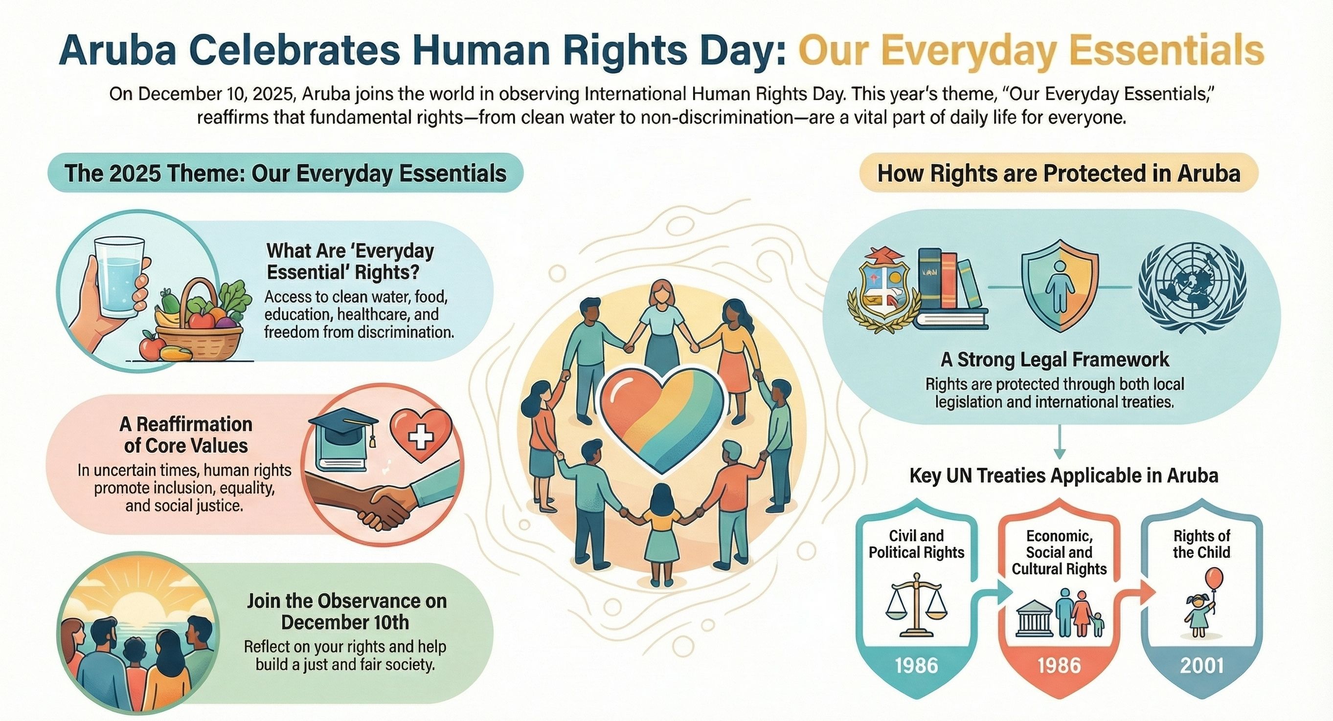 Na Aruba, e derechonan aki ta wordo protegi door di leynan local y tratadonan internacional, pa asina tur hende por biba cu dignidad y igualdad.