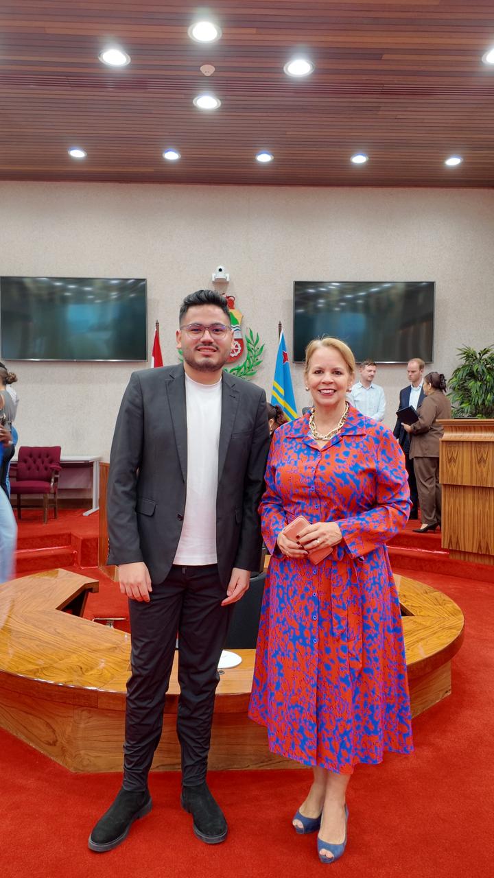 ORANJESTAD (AAN): Diahuebs ultimo, Lider di Fraccion señora Evelyn Wever-Croes y Parlamentario Endy Croes tabata presente den sala di Parlamento den un encuentro hopi special cu un grupo di studiantenan di Haagse Hogeschool y Universidad di Aruba, cu ta sigui nan minor ‘Koninkrijkszaken’.