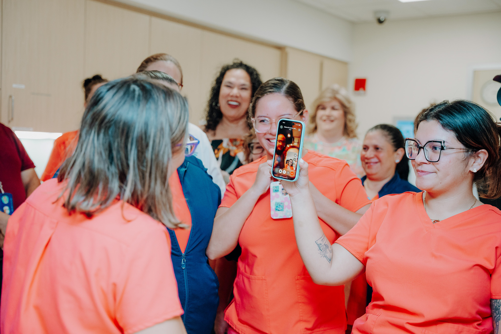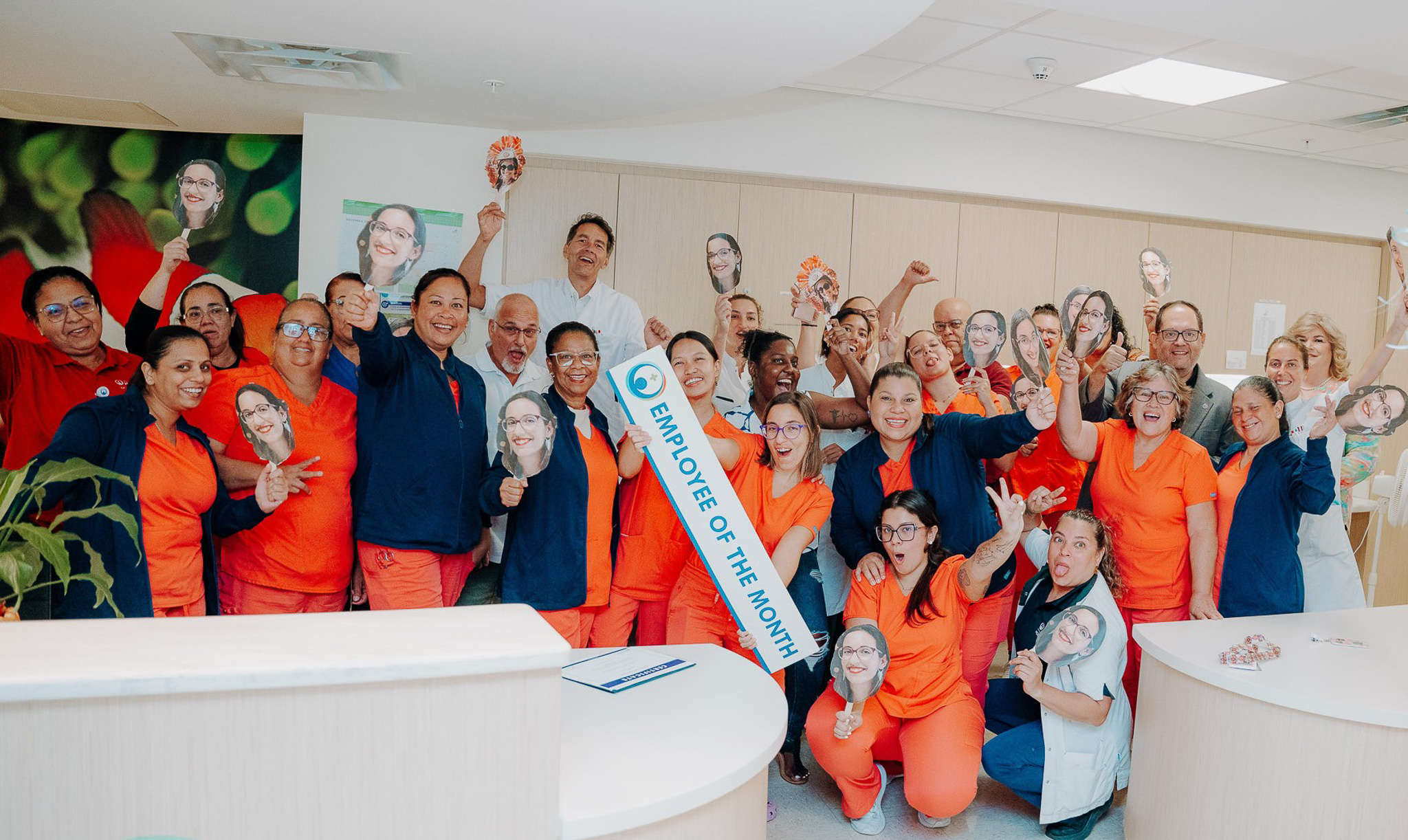 cu lo tin un anuncia importante y personal di parti di Hunta di Directiva. Despues di haci ‘joke’ miembro di Hunta di Directiva Gregory Croeze a bisa cu nan t’ey paso entre nan tin e empleado di luna di oktober. Un sorpresa grandi pa Leticia Gonzales, nurse di mucha, na momento cu tur colega hunto a saca un borchi cu tin riba dje potret di Leticia y grita ‘surprise’! Y mas emociona ainda el a bira ora cu el a mira cu su famia tambe ta presente di forma virtual for di Spaña. Un gran sorpresa y bunita reconocemento cu lo keda cune pa semper.