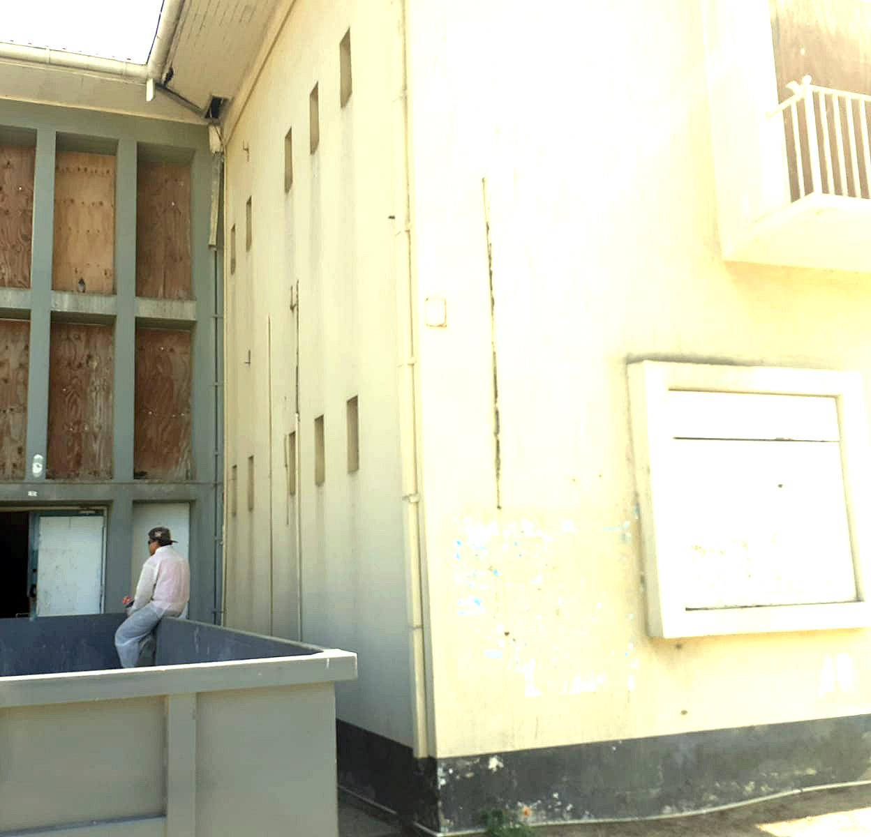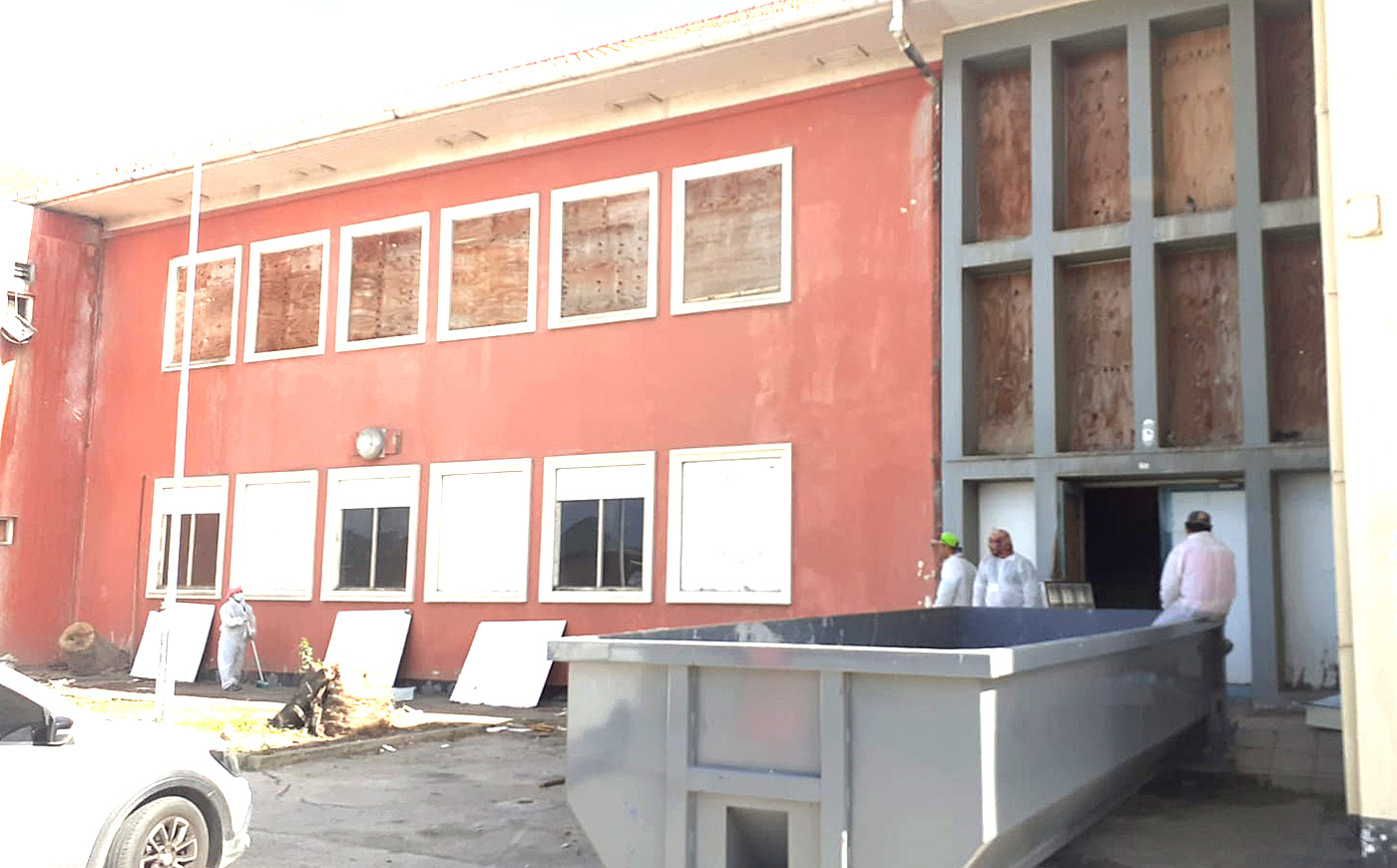 ORANJESTAD (AAN) Un grupo di trahado di un compania priva contrata pa Gobierno di Aruba, ta bezig ta dunando e prome paso pa drecha e edificio, antes DOW, na Paardenbaaistraat, cu un limpieza total.