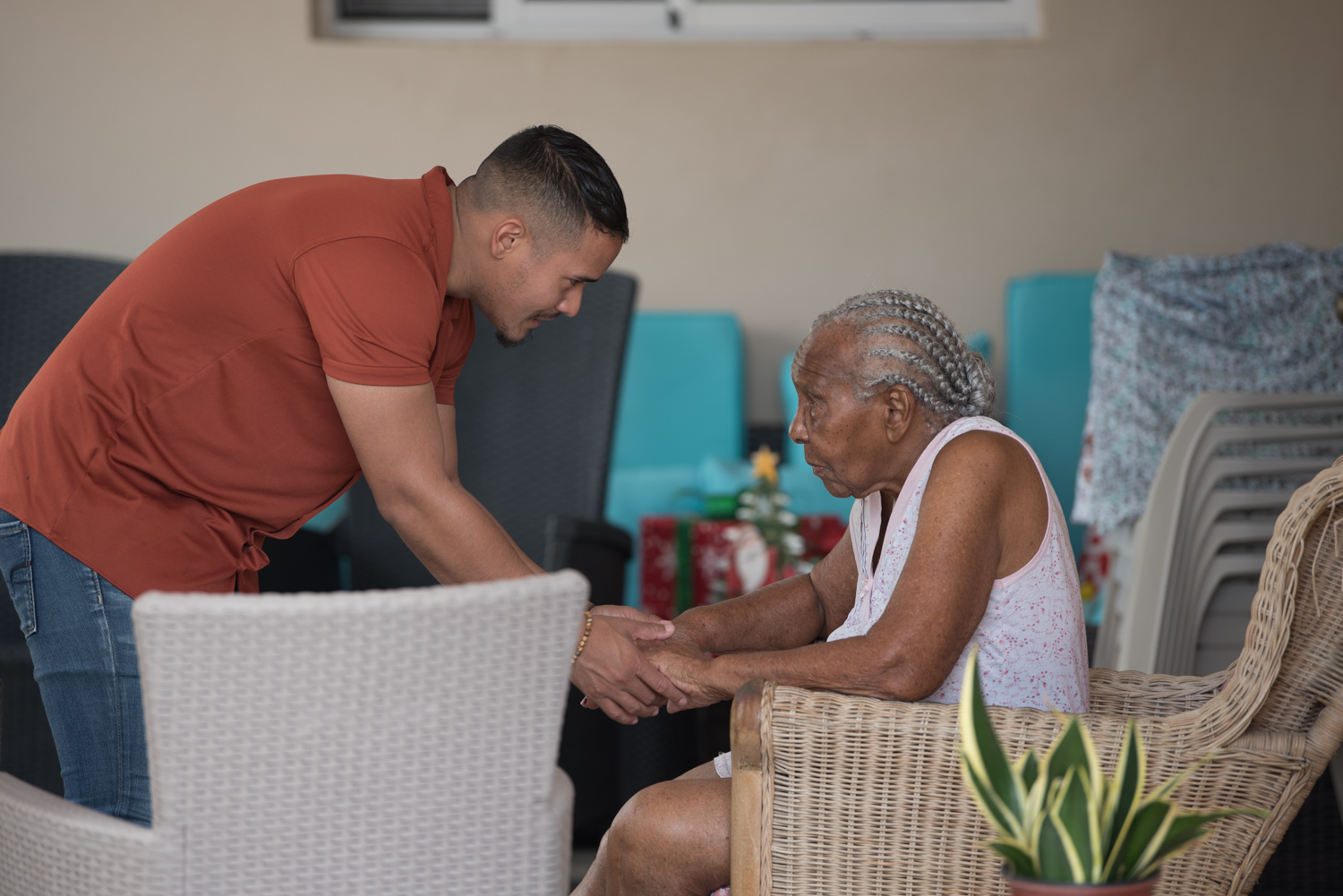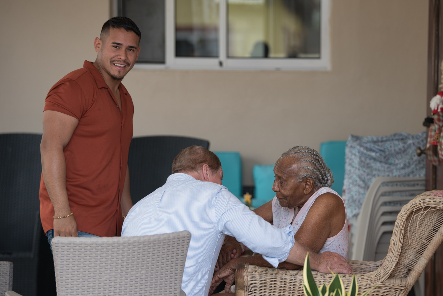 Merdia, e piscadonan di Rancho Clememte na Balashi a invita Prome Minister, hunto cu Minister Cicilia y e ekipo di Accion di Bario, pa dal un plato di pisca cu funchi fresco prepara.