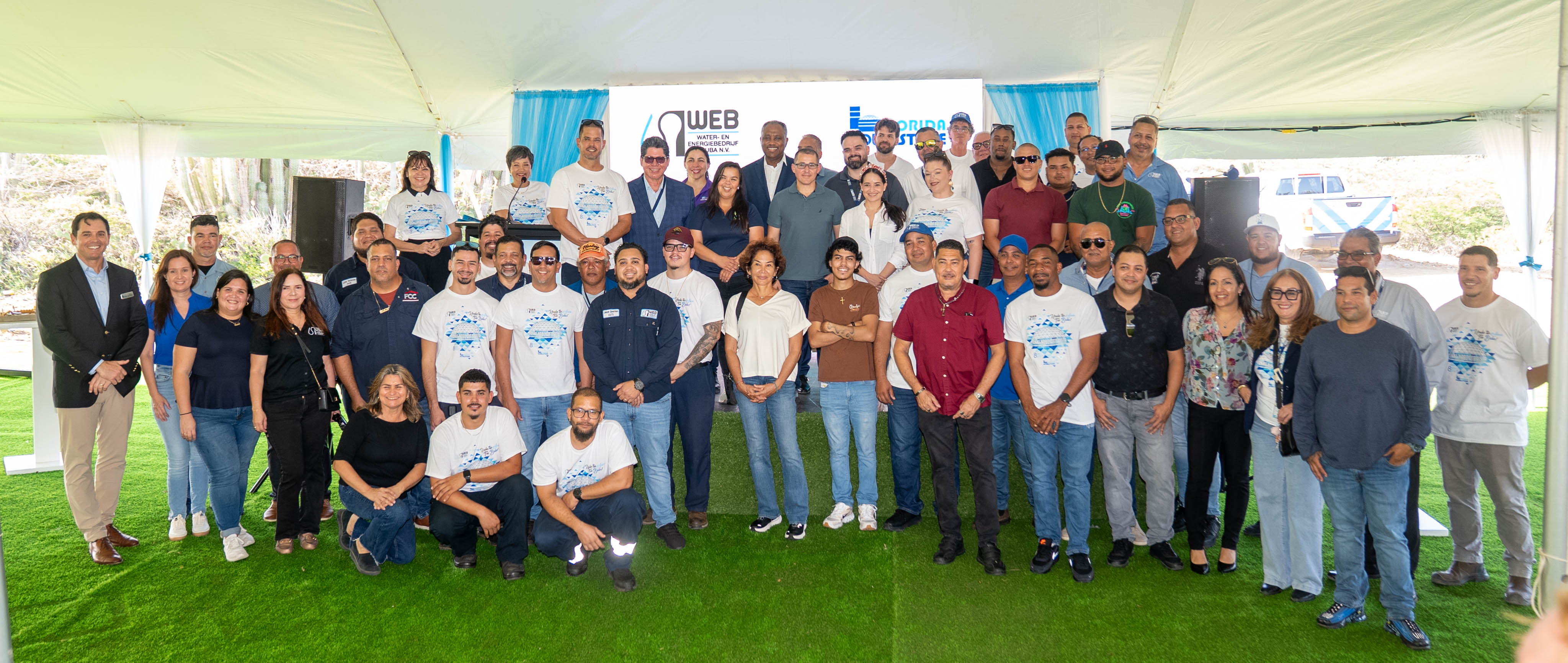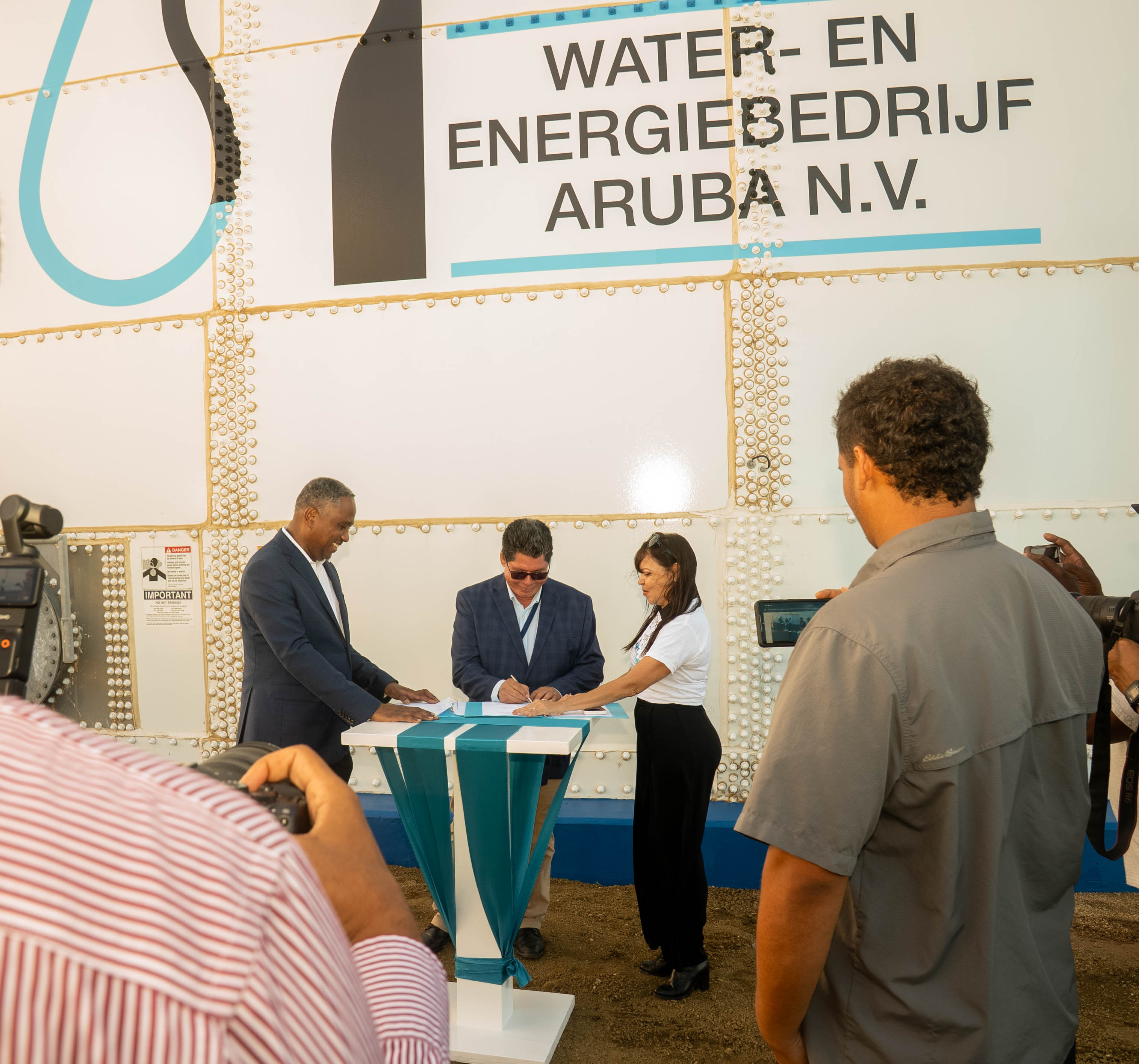 ORANJESTAD (AAN): Gobierno di Aruba, pa medio di Minister encarga cu Energia, mr. drs. Arthur Dowers, hunto cu WEB Aruba y partner tecnico Florida Aqua Store, a inaugura oficialmente e tanki di awa nobo na Alto Vista, un instalacion vital pa garantisa un suministro di awa confiabel y di calidad halto pa area do Noord y e sector turistico.