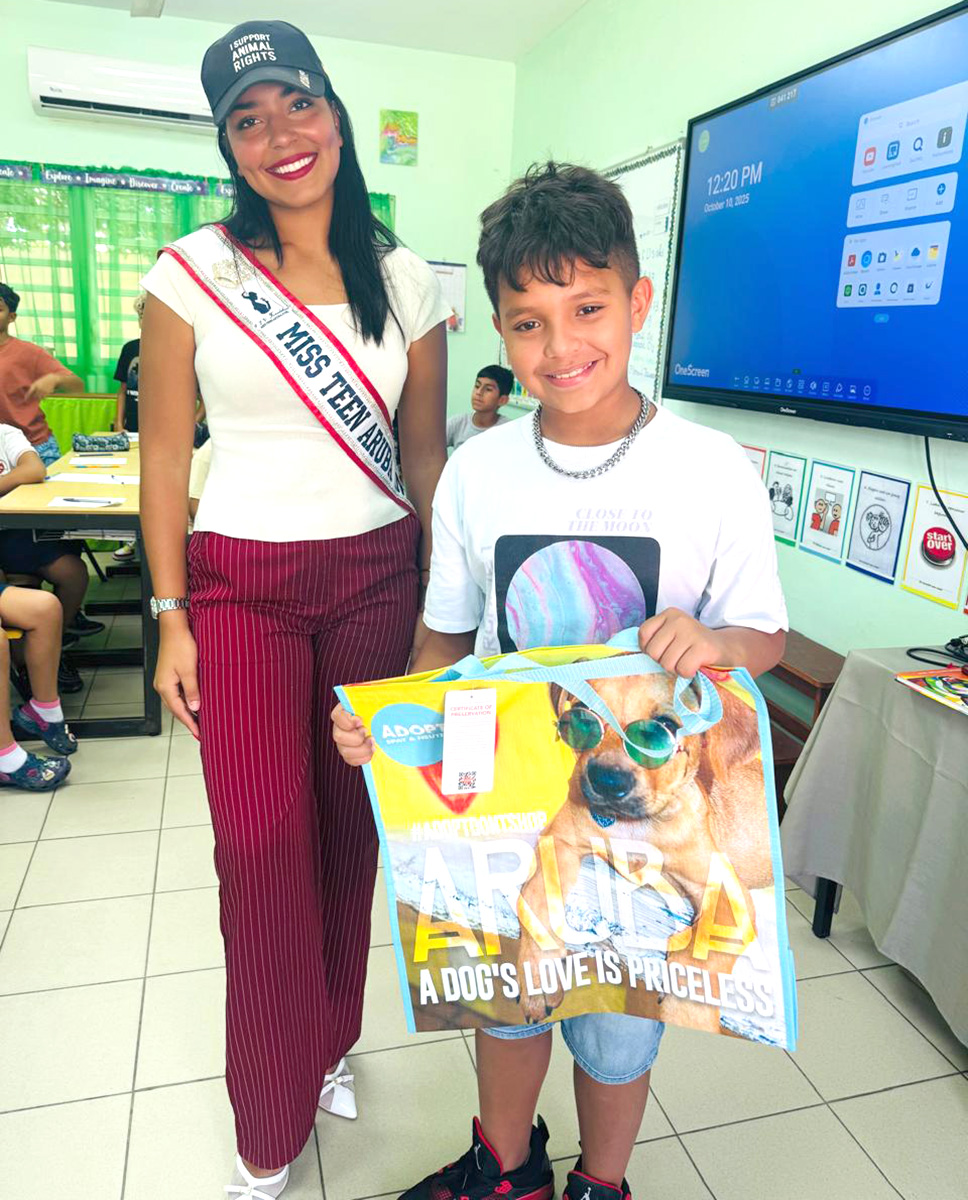 ORANJESTAD (AAN): Durante siman di Dia Internacional di Bestia, a sigui cu e campaña di marca ARUBIANO su di 15 aniversario. Nan embahadora, Tara van der Werk kende ta actual Miss Teen Aruba International, a sigui cu e campaña cu ta mishi cu su curason direct, esta pa sigui concientiza comunidad riba Derechonan di Animal.