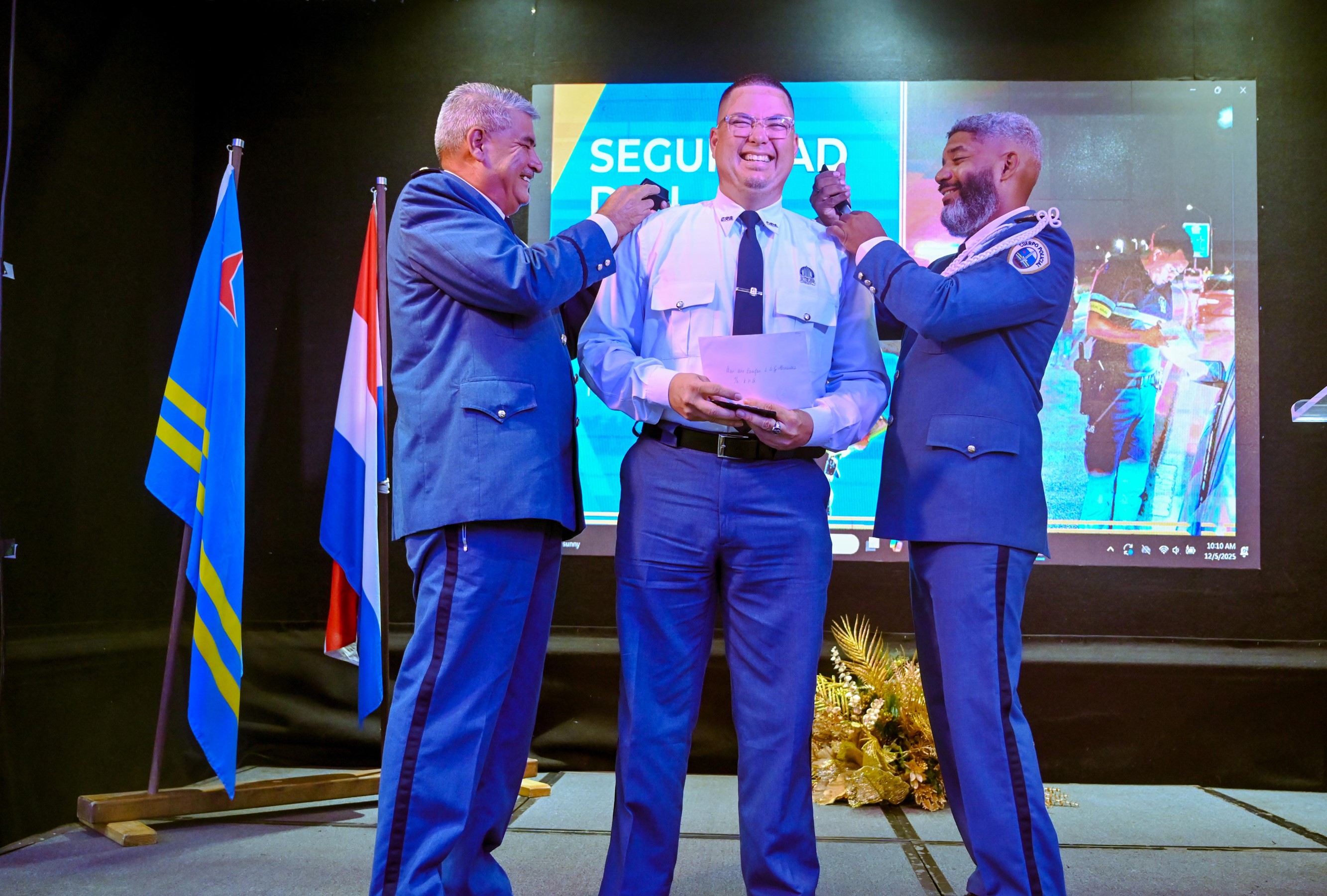 Tambe nos tabata tin Onderinspecteur pa Onderinspecteur Eerste Klasse cu ta keda C. Velasquez. “Mi ta masha orguyoso di cada un persona cu awe a ricibi nan decreto gubernamental. Mas orguyoso mi no por ta di mira nan crece y honranan debidamente. Nan ta nos wes’i lomba cu ta carga nos organisacion y nos mester aprecia cada un di nan, pa nan esfuerso tempo y dedicacion. Esaki por sosode solamente cu e sosten di nan famia y mi ta yamanan danki di curason.” tabata palabranan di Altocomisario Arnhem na e ocasion special aki. Un gradimento grandi na Sra LaSorte di AHATA y Assistent Manager sr Freddy Zegan di Alhambra Ballroom pa nan sosten pa logra un dia bunita pa nos personal