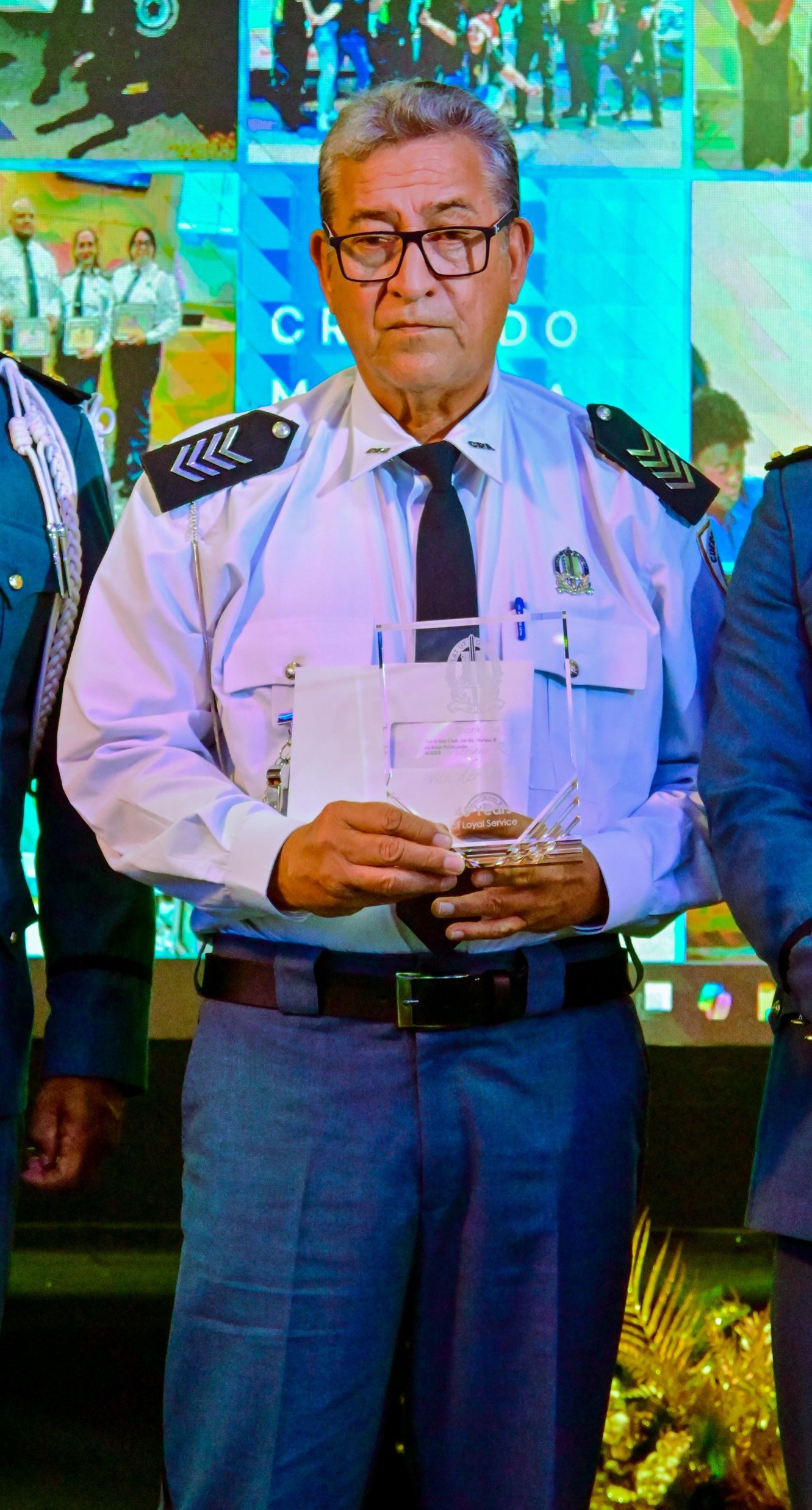 Ta trata di tanto Polis como nos personal administrativo cu a cumpli 25, 30, 35, 40 y 45 aña sirbiendo Pais Aruba honradamente. V. Coffie, Sr. A. Croes, J. Wing, M. Tuitt y I. Phelipa ta e personalnan cu a cumpli 25 aña. Tambe nos tabata tin un grupo grandi cu a cumpli 30 aña kende tabata; R. Ras, H. Nadal, R. Solognier y C. Gumbs. 35 aña di Hubileo tabata; L.Dubero-Bislip, E. Simileer y U.Lacle. Na 40 aña nos tabata tin D. Tchong, A. LioeA-Tjam y R. Solagnier y na ultimo nos tabata tin M. Van der Linde cu a celebra su 45 aña den nos organisacion policial.
