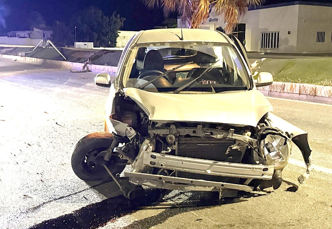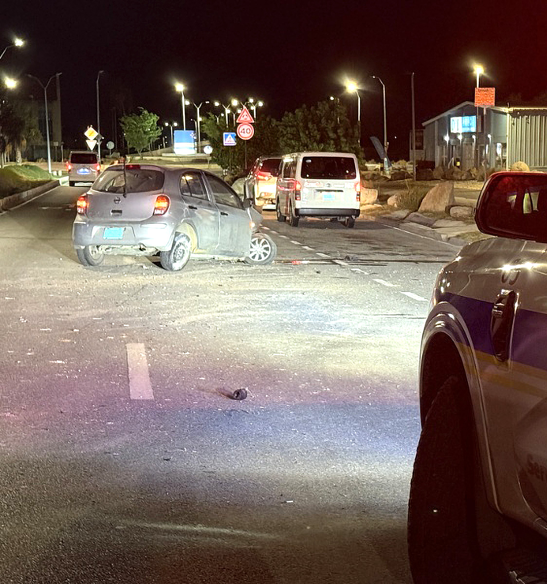 net yegando na altura di Cmart, algo a pasa cu un auto compacto Nissan March color shisnishi cu number A-62943 cu ta den yega rotonde di Cumana.