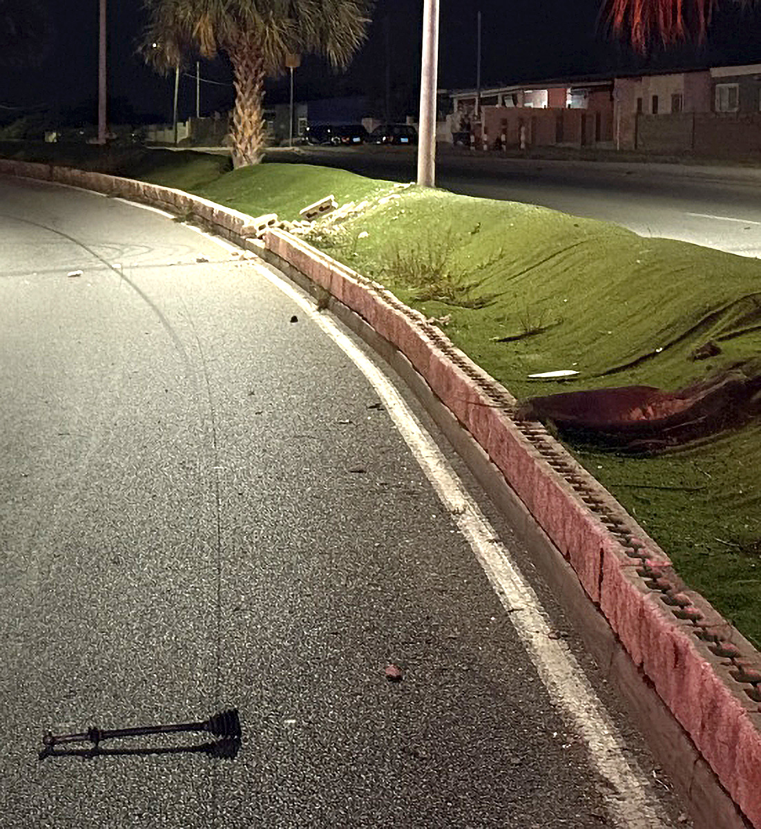 E chauffeur femenino a relata na Polis e storia, cu ta su stuurwiel a ‘lock’ di tal forma cu e no tabatin control mas riba su auto. Pesey el a keda dal mescos cu un pinball mashin na banda di acera, te cu el a finaliza sin por move mas. E daño na e parti di motor, transmission, struts y shocks y as di e auto ta extremo.