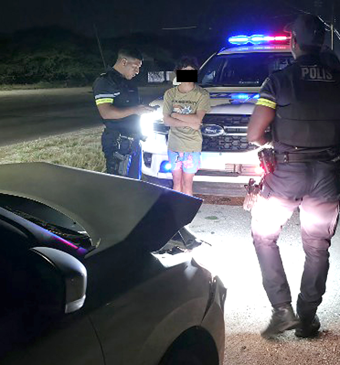 Parse cu e hoben tin apenas 15 aña di edad, pues no tin rijbewijs. E auto ta di su tata. Mientrastanto e dama a keda altura di Calbas, unda e tabata bati na porta di hende. Polis a logra hay'e y a detene tambe.