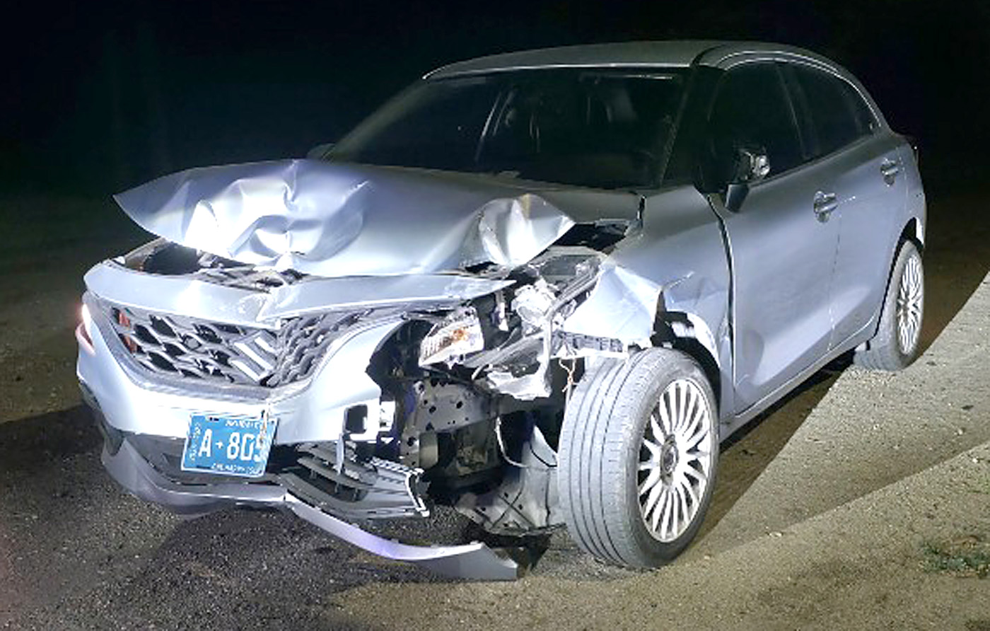 ORANJESTAD (AAN): Dialuna marduga banda di 2:00 am, un automobilista a topa un auto sedan Suzuki Baleno ful kibra coriendo riba e caminda di Playa pa Tanki Leendert, yegando rotonde di Tanki Leendert.