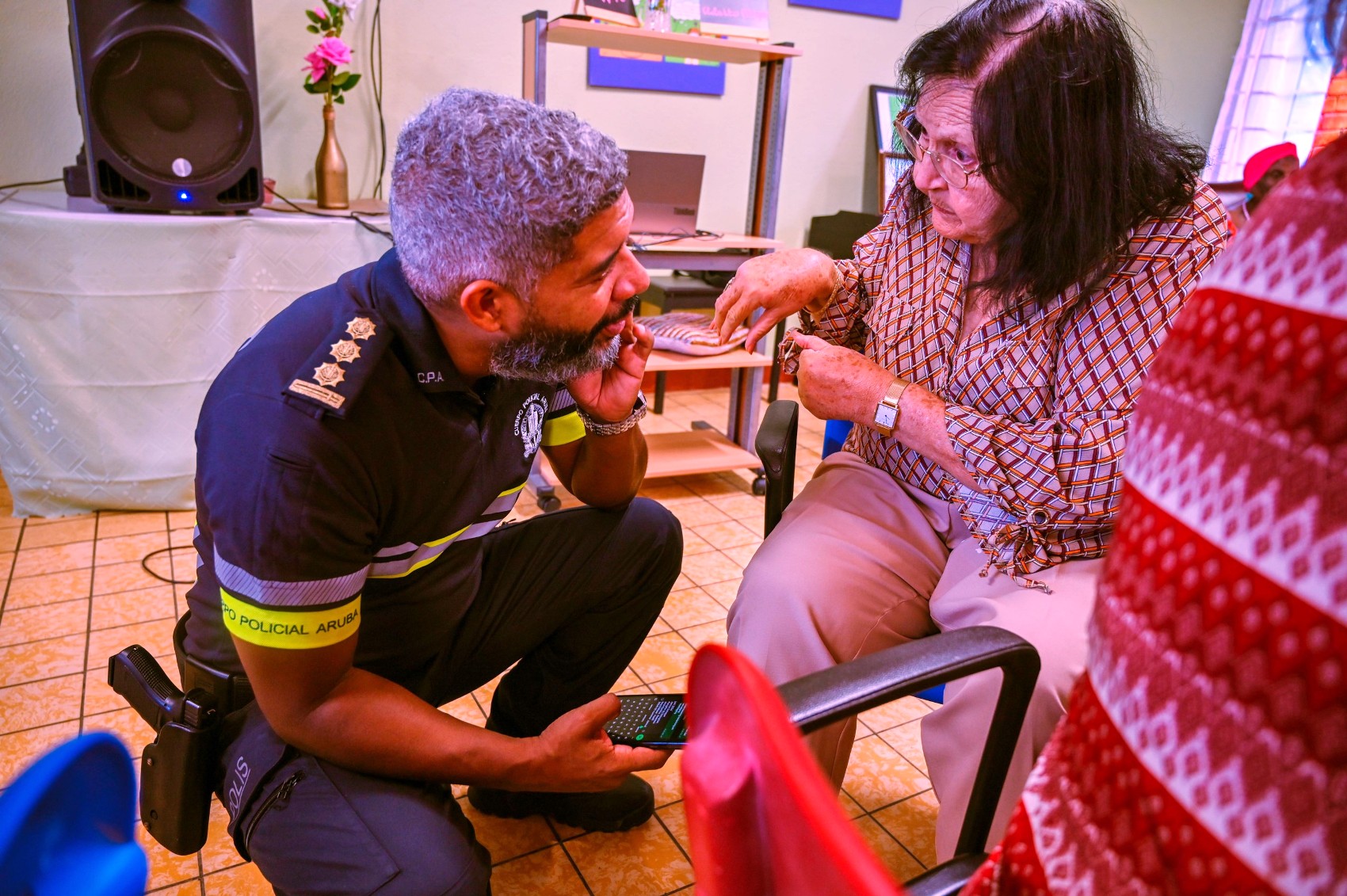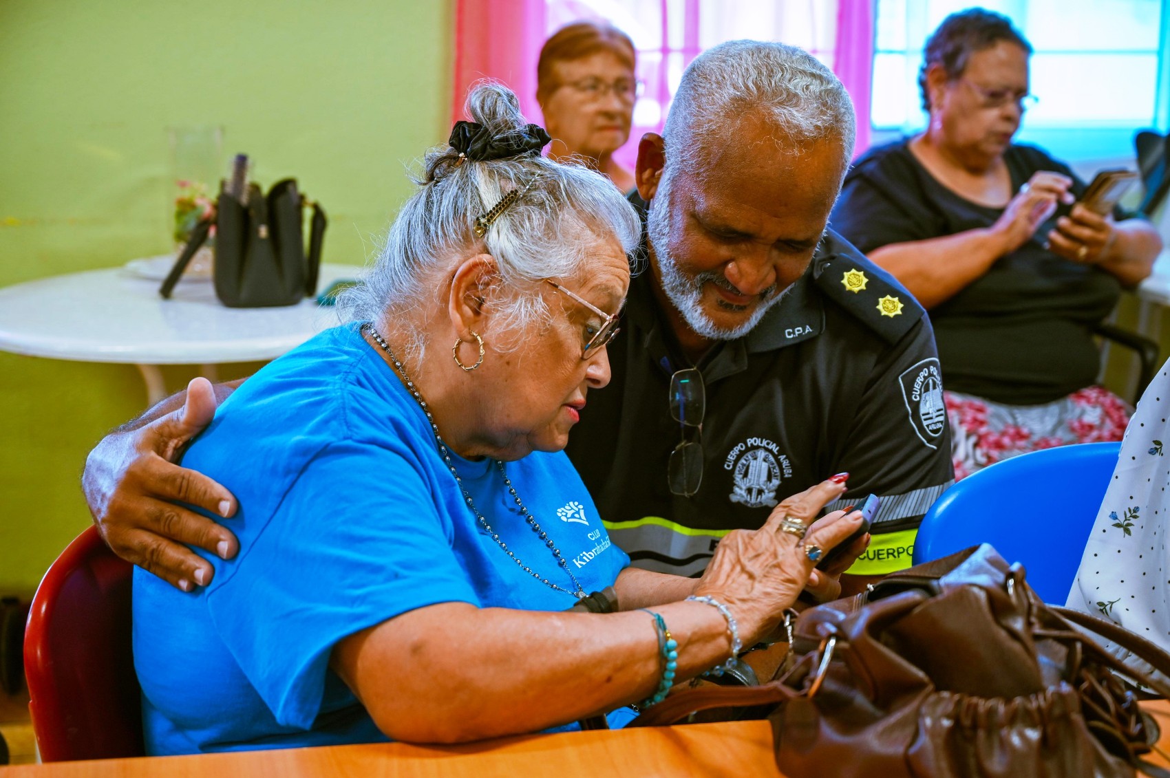 Den cuadro di esaki altocomisario Ramon Arnhem y Hefe di Polis di Bario Inocencio Matos tabata presente na e actividad semanal na Club Kibrahacha 60+. Bandi di un encuentro ameno y cu hopi storianan di antes, e parti primordial tabata pa laga nos adulto mayor sa cu Cuerpo Policila ta aprecia y ta honranan.