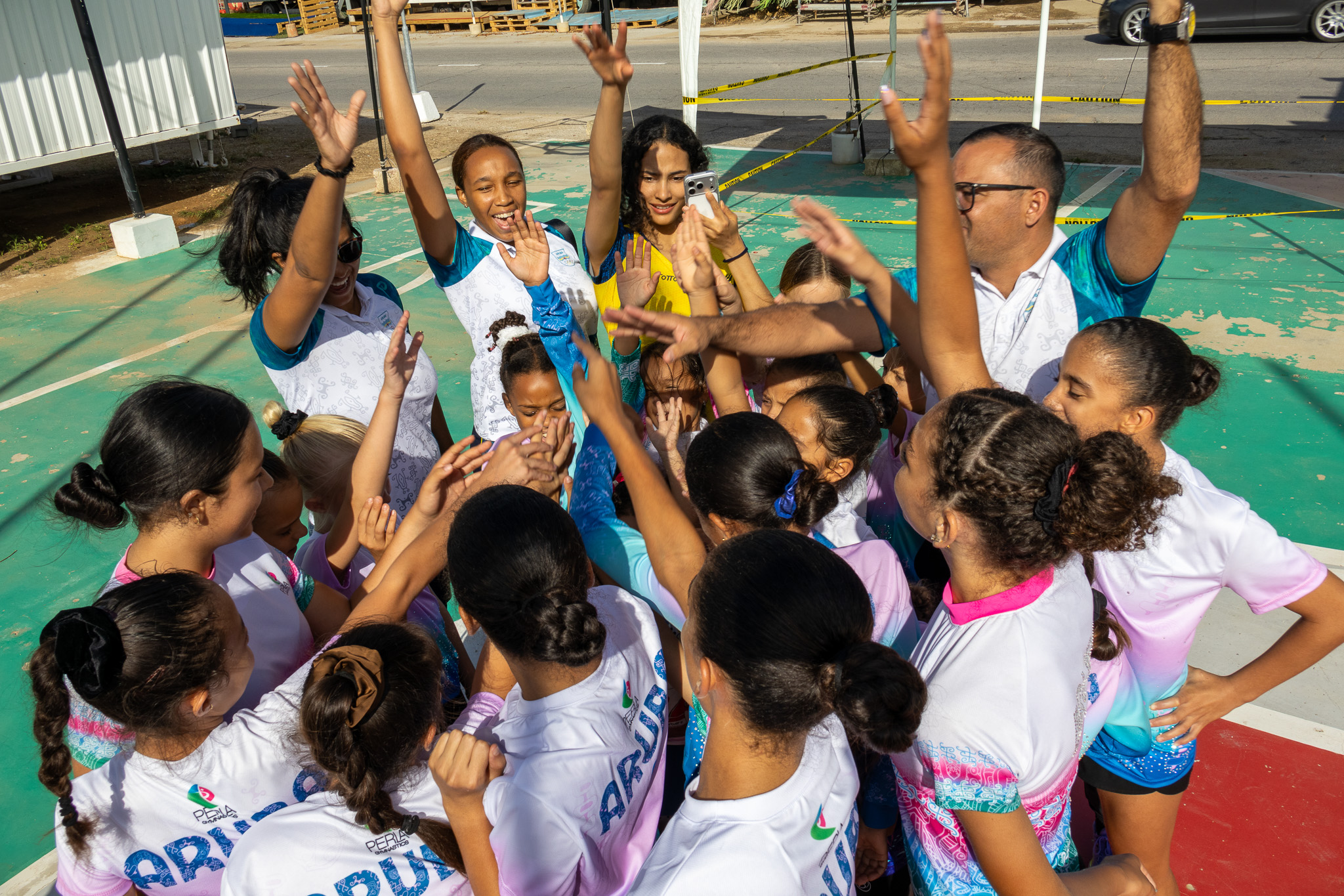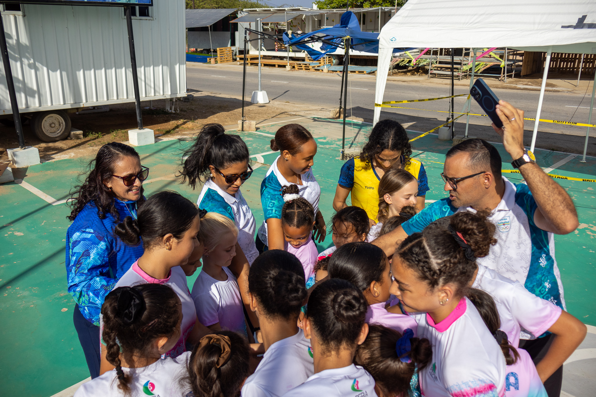 cu a bin acompaña door di Miguel Ortiz cu ta presidente di e club y Adriana Sevilla cu ta e “head coach”. Hunto cu e muchanan, a bin di bishita atleta di seleccion di gimnasia di Colombia, Oriana Viñas. Oriana ta un atleta di rendimento cu diferente logro den e mundo di gimnasia rítmica, unda e la gana diferente medaya na e ultimo edicion di e Weganan Centroamericano y di Caribe “SanSalvador2023”.