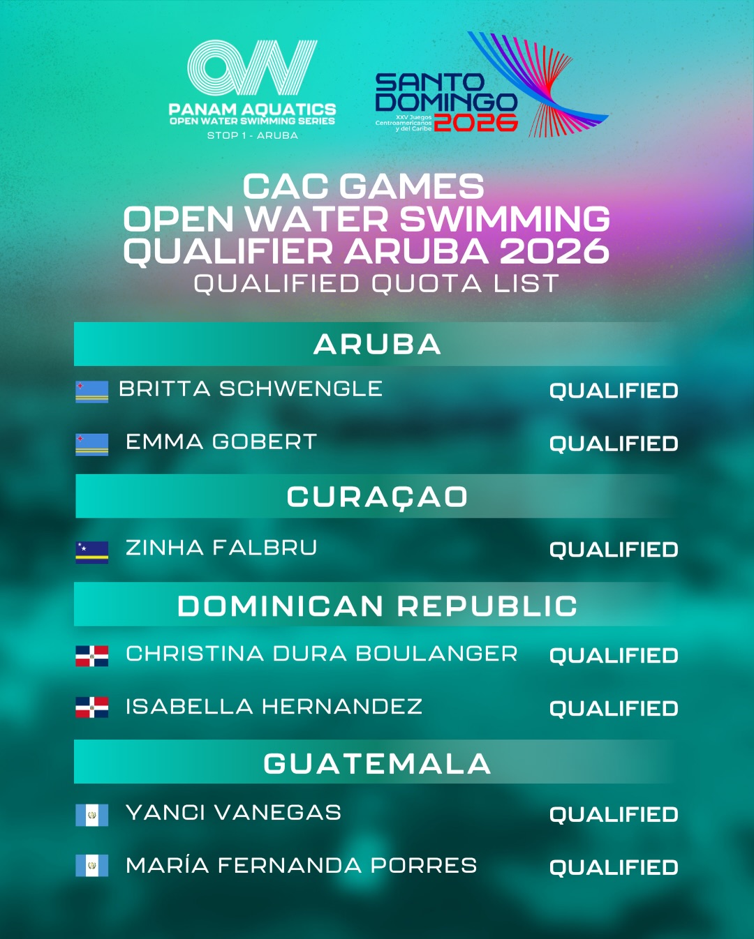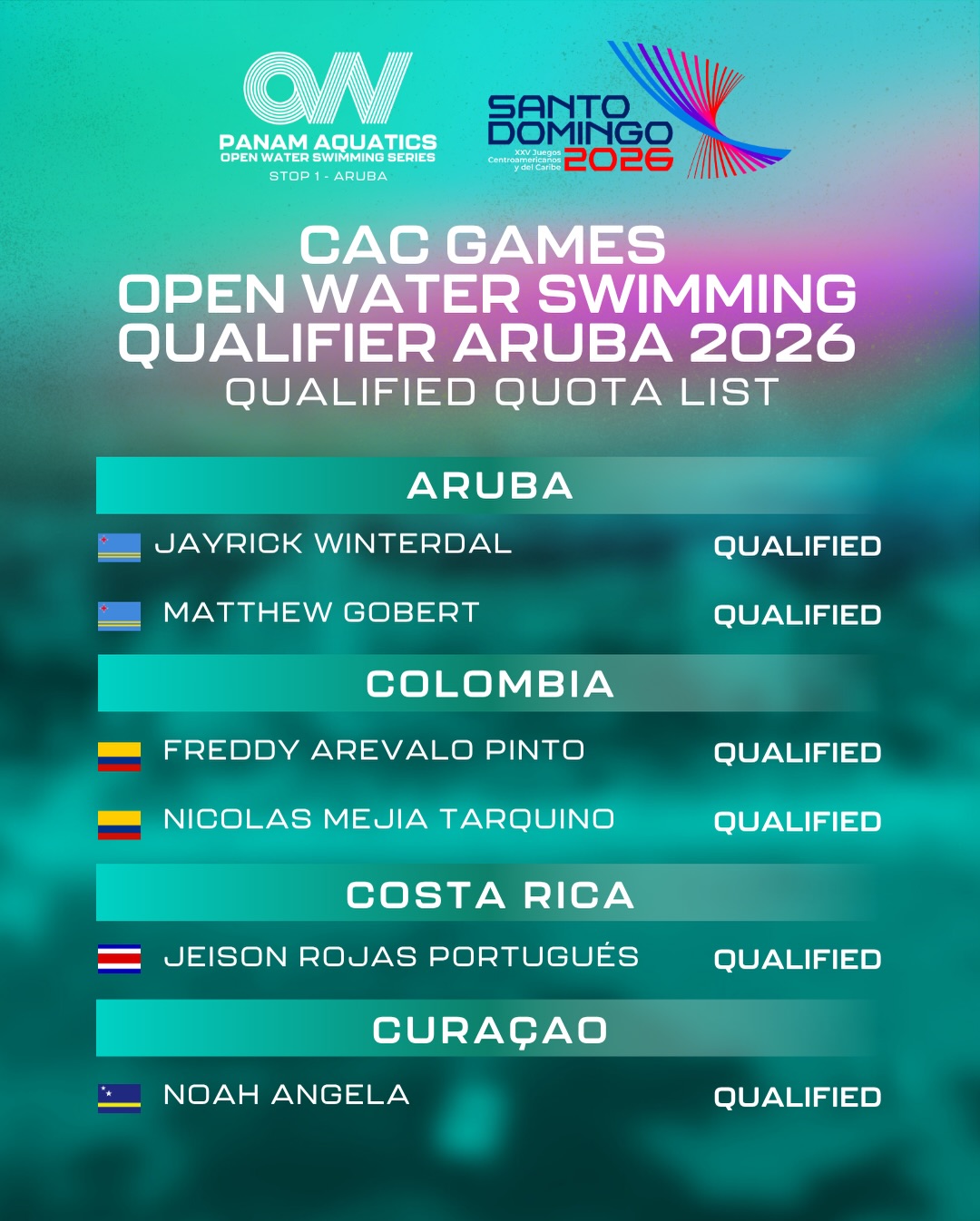ORANJESTAD (AAN): Durante fin di siman ultimo a tuma luga e “Panam Aquatics C.A.C. GAMES OPEN WATER SWIMMING QUALIFIER ARUBA 2026” na Mangel Halto.