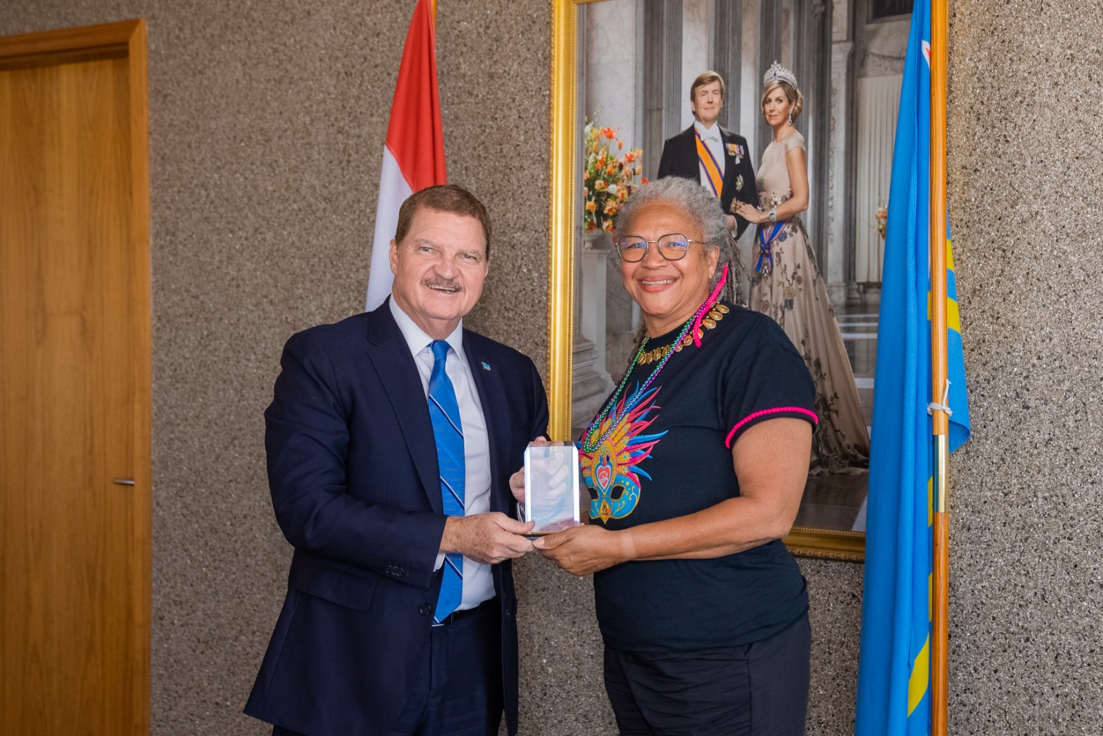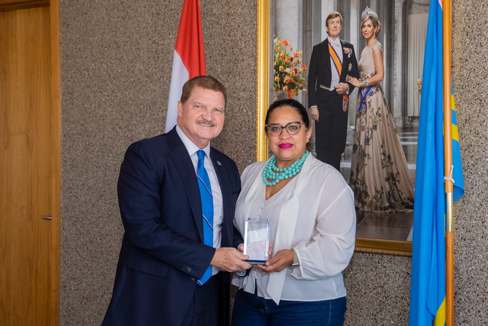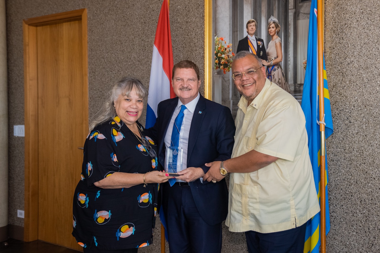 caminda el a haci entrega oficial di plakaat di agradecimento na un grupo di NGO y organizacionnan cu, pa diferente motibo, no tabata presente durante e Common Good Conference y por lo tanto no a ricibi nan plakkaat e momento ey.