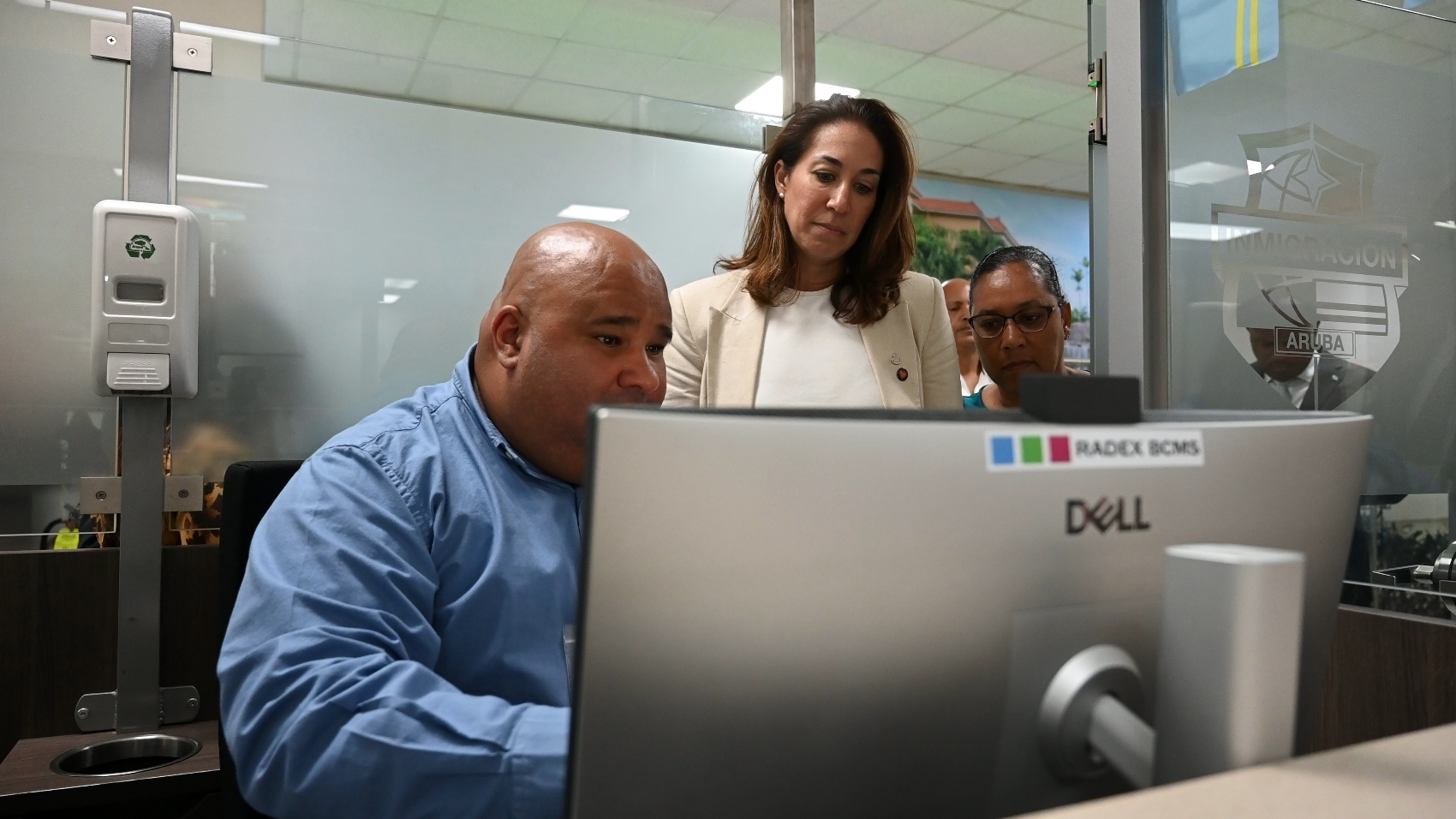 Donderdagmiddag hebben minister van Justitie Arthur Dowers, samen met Inmigratie Aruba, de minister van Justitie van Sint Maarten Nathalie Tackling ontvangen voor een strategische presentatie over het moderne systeem dat Aruba implementeert op de luchthaven. Deze ontmoeting bevestigt de positie van Aruba als regionale leider in innovatie, veiligheid en efficiëntie in het proces van in- en uitreizen van passagiers.
