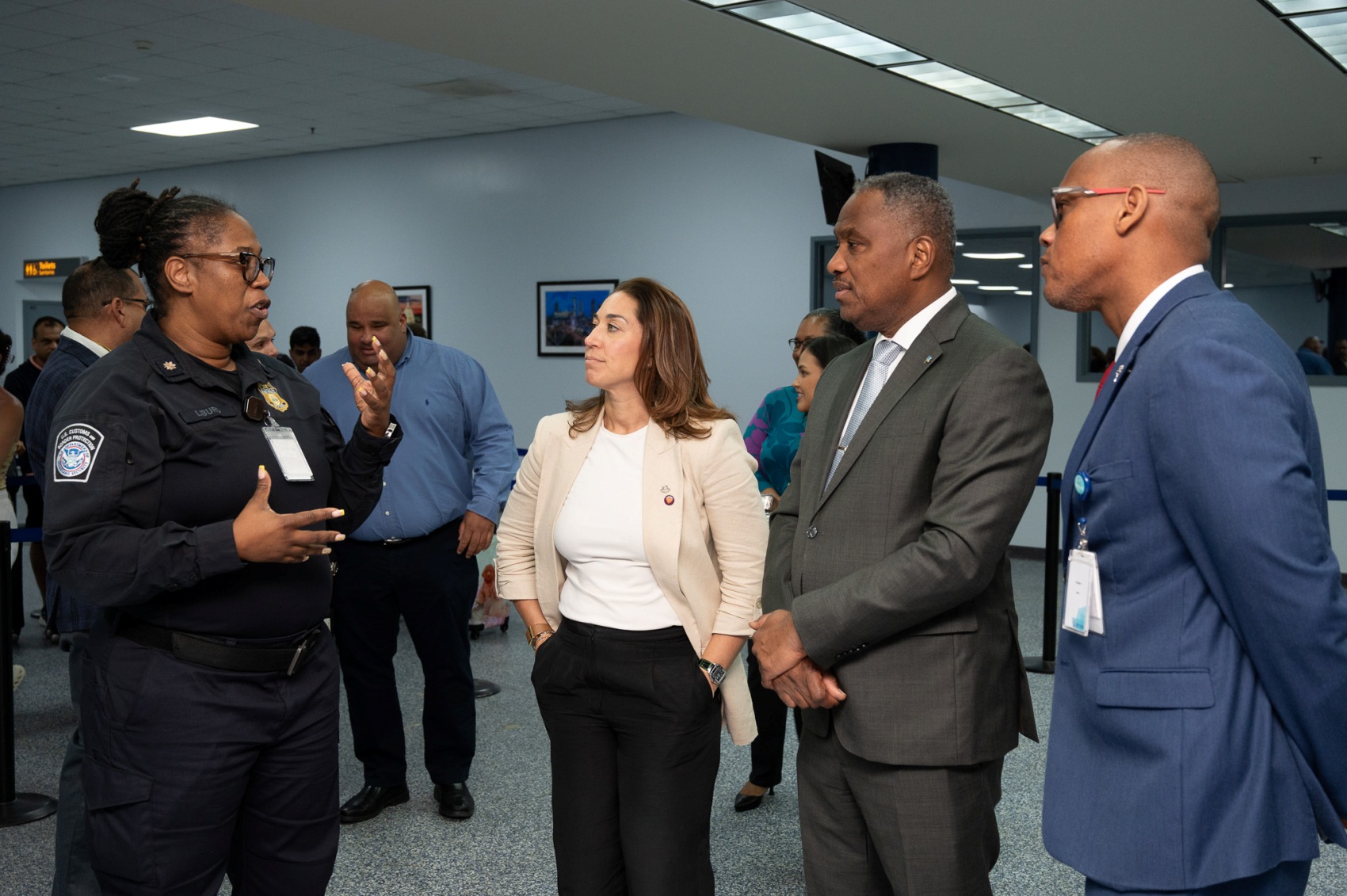 Despues di e puntonan di control di entrada di inmigracion, e delegacion a continua cu un bishita na area di US CBP preclearance. Aki nan a haya un splicacion di e sistema integra cu ta procesa miles di pasahero cu destino Estados Unidos tur dia. E proceso aki ta inclui tecnologia manera APIS/ATS/TECS, Global Entry y sistemanan biometrico, cu ta acelera e fluho di pasaheronan, specialmente pa ciudadanonan Americano.