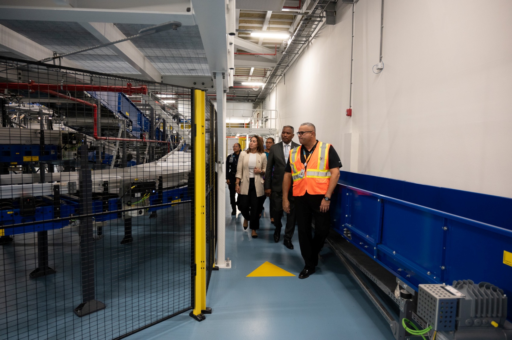 De presentatie werd afgesloten met een rondleiding door de nieuwe bagageafhandelingsfaciliteit, die is uitgerust met de nieuwste beveiligingstechnologie en twee extra screeningsfasen die voldoen aan internationale normen.
