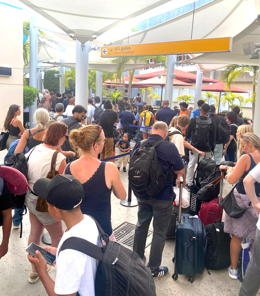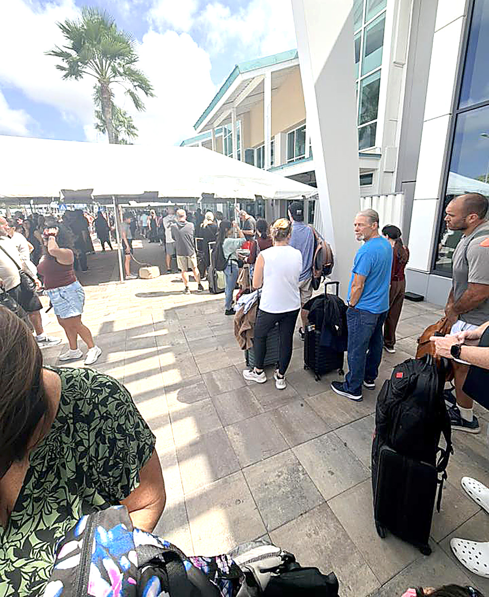 Pero banda di 1:20 pm ainda paden di terminalnan di US Bound tabata check-in pasahero, pero poco despues a drenta e notificacion pa tur hende sali, y cu servicio ta wordo suspendi temporalmente, mientras cu ta atende e emergencia riba pista.