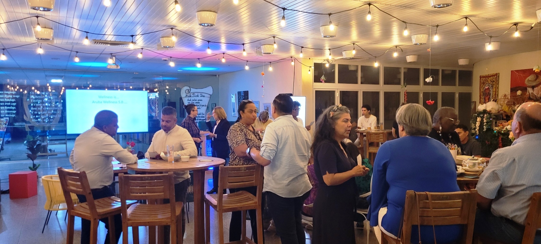 Despues di un break cu snacks bon surti di Lieverd Lees Café a sigui e anochi cu e Wellness Café, unda Shanti a elabora riba e topico di ‘Kiko ta Bienestar’, hunto a hasi practica di mindfulness, reflexion y despues tur hende tawatin e oportunidad di intercambia cu otro.