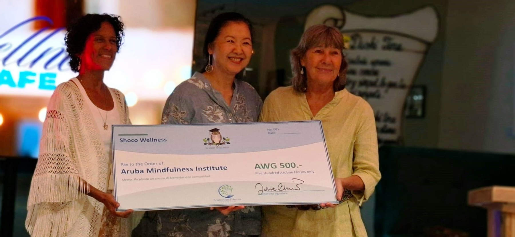 E anochi tambe a celebra e prome colaboracion oficial cu Shoco Wellness di Universidad di Aruba cu e proyecto conhunto, Mindful Monday Moment. Juliet Chieuw, cordinador di Shoco Wellness tambe a hiba palabra y a firma y entrega un cheque simbolico na AMI pa marca e comienso di un colaboracion fructifero cu mas planes di bienestar pa comunidad den futuro.