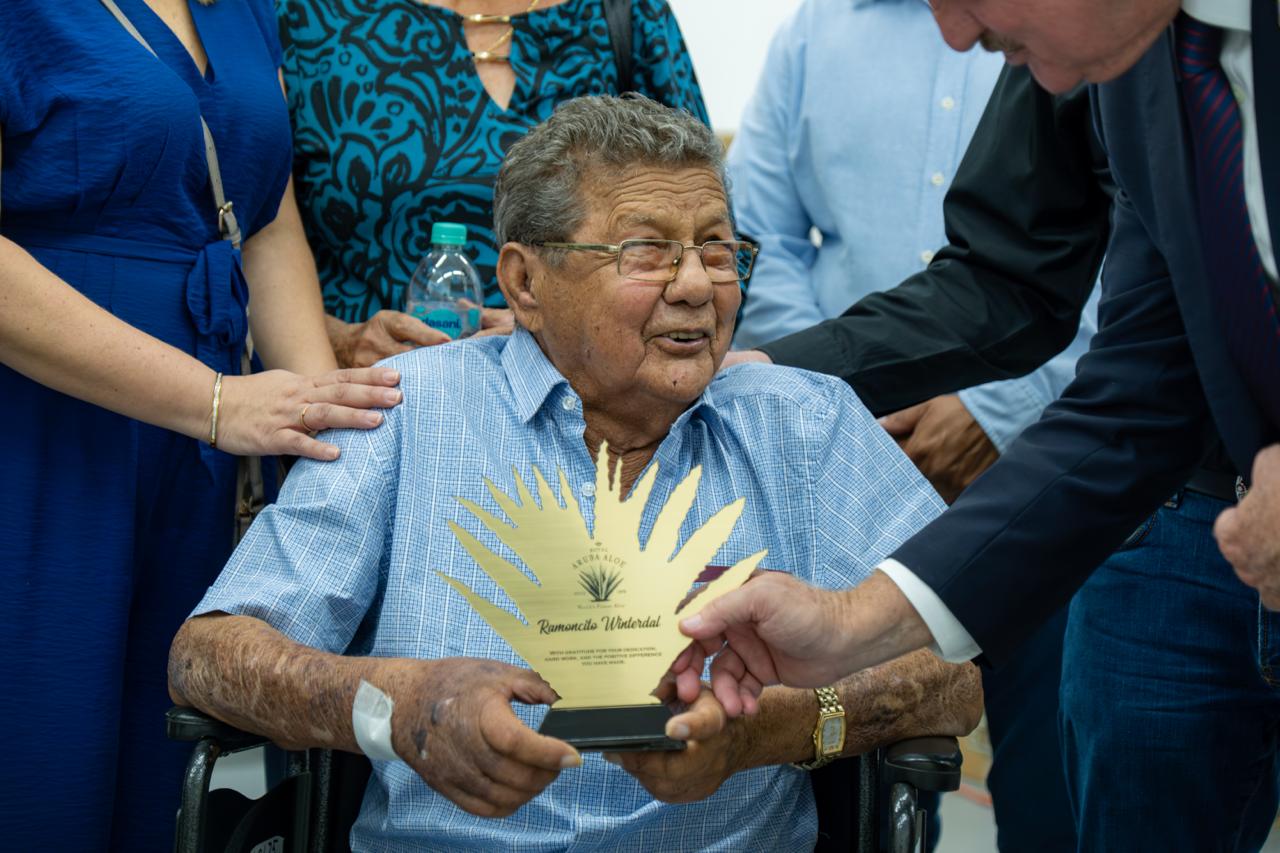 E dedicacion aki, ta un simbolo di aprecio pa su dedicacion, compromiso y contribucion significativo na e Aruba Aloe. Maske Ramoncito Winterdal no ta den su miho momento cu su salud, e tabata presente y a forma parti durante e ceremonia, loke a duna un significado aun mas profundo. Winterdal a keda visiblemente honra cu e gesto na su dedicacion.