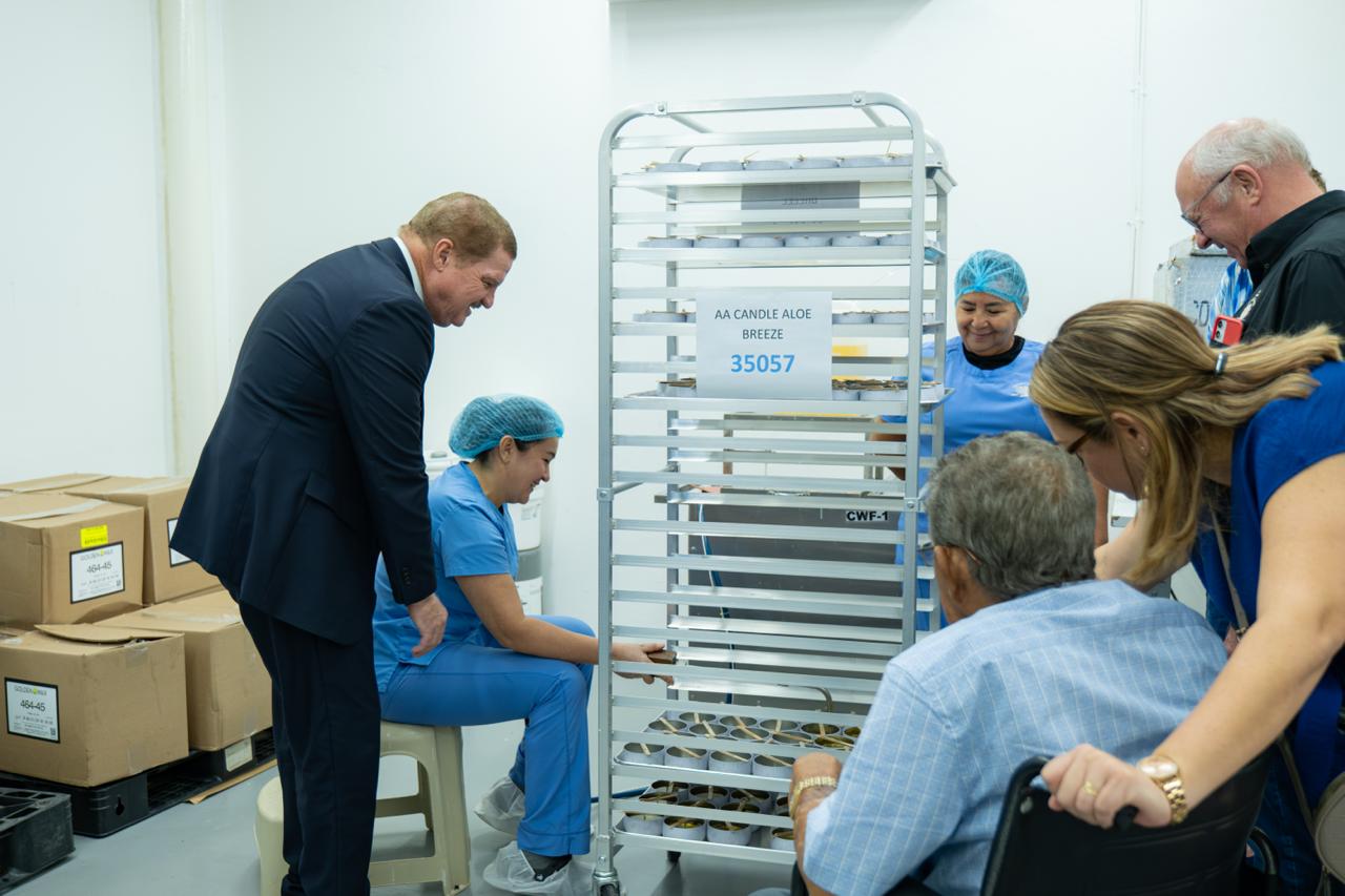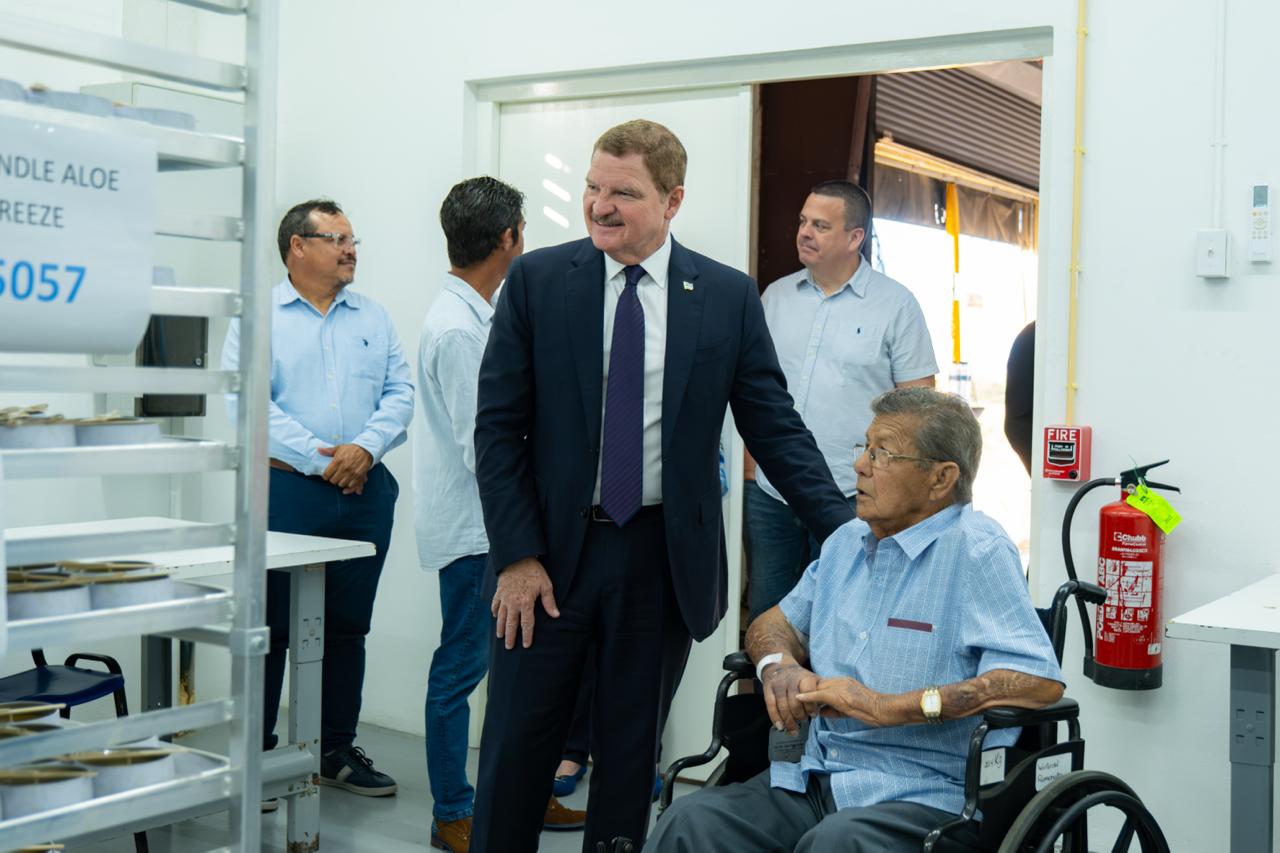 ORANJESTAD (AAN): Durante siman, Prome Minister tabata invitado na e planta di Aruba Aloe, caminda a haci apertura oficial di un lokaal nobo di produccion, unda ta produci bela. Durante e evento, e area di produccion nobo, a keda dedica na Ramoncito Winterdal, empleado ehemplar pa hopi aña na e fabrica.