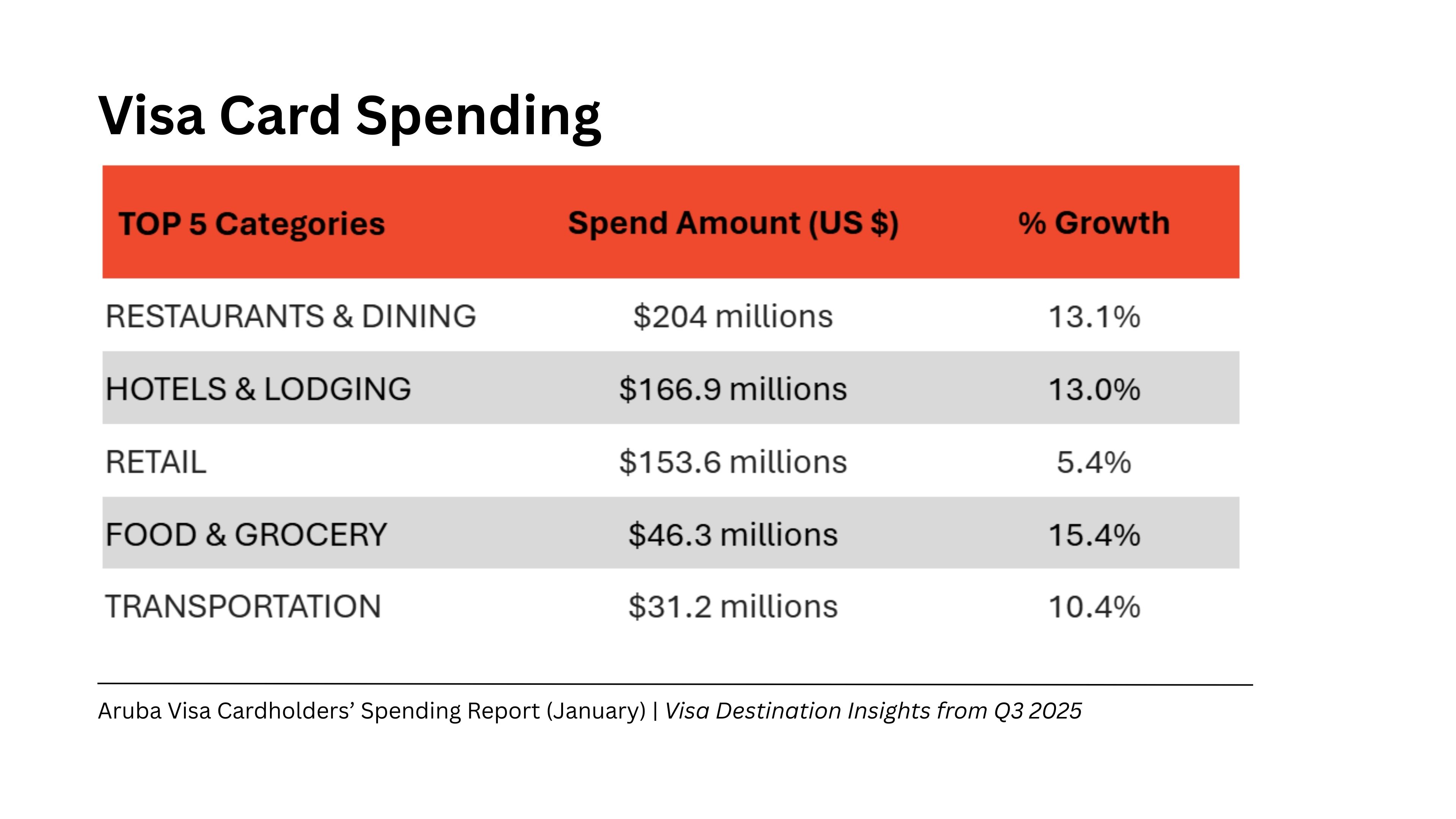 ORANJESTAD (AAN): Aruba Tourism Authority a indica cu durante 2025, Aruba a registra 1,028,071 Visa cardholders di 152 pais, cu a genera un total di USD 696 miyon den gasto. Esaki ta mustra un patronchi di gasto amplio, unda tanto cardholders como transaccionnan a sigui subi na ritmo saludabel.