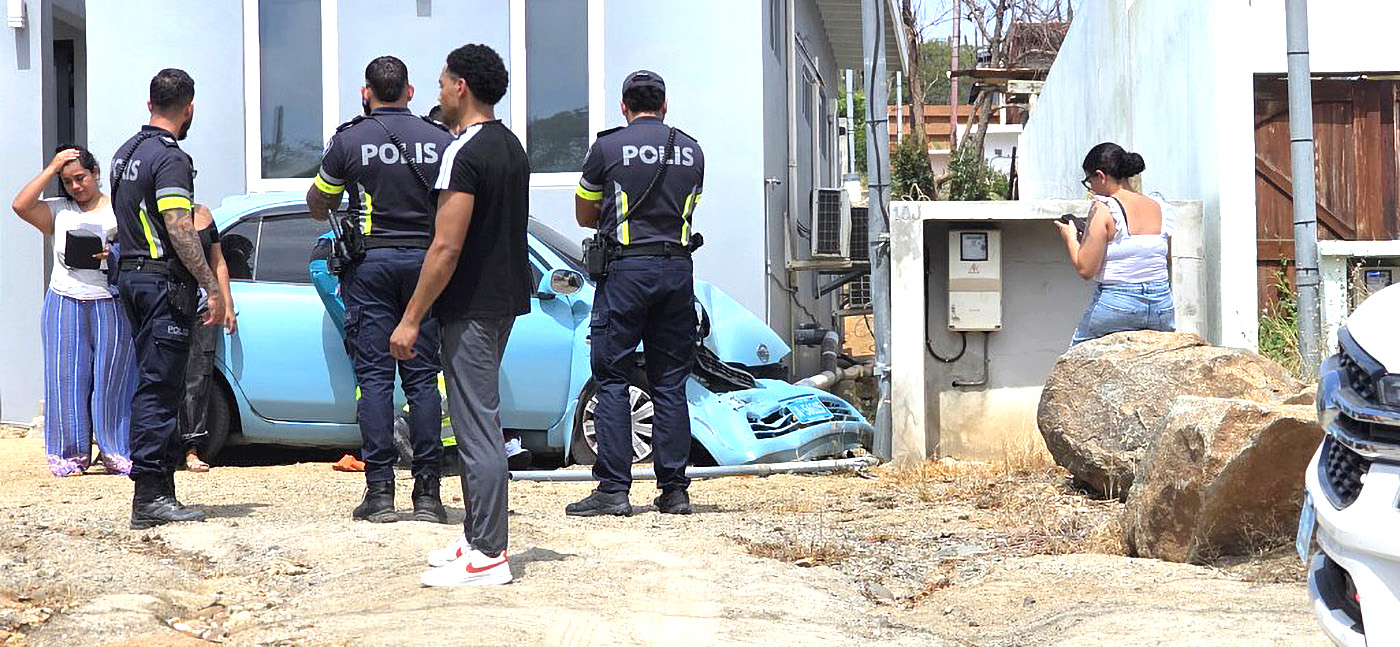A resulta cu chauffeur di un Nissan March color blauw cla, pa un motibo of otro a baha di caminda, y bay dal den un ‘nist’ di meternan di NV Elmar na e cas Jabuaribari 10-J. Esaki ta net panort di consultorio di Dr. van Ool.