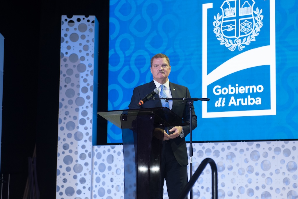 Prome Minister Eman, den su discurso, a refleha riba un momento historico di desaroyo na Aruba. Para riba escenario, na unda antes tabatin lama, Prome Minister a recorda con na 1985, na momento cu Aruba su pilar economico principal a stop di existi, un politico hoben y visionario a para na canto di lama y tabata busca manera pa saca Aruba for di e pio crisis economico den nos historia.