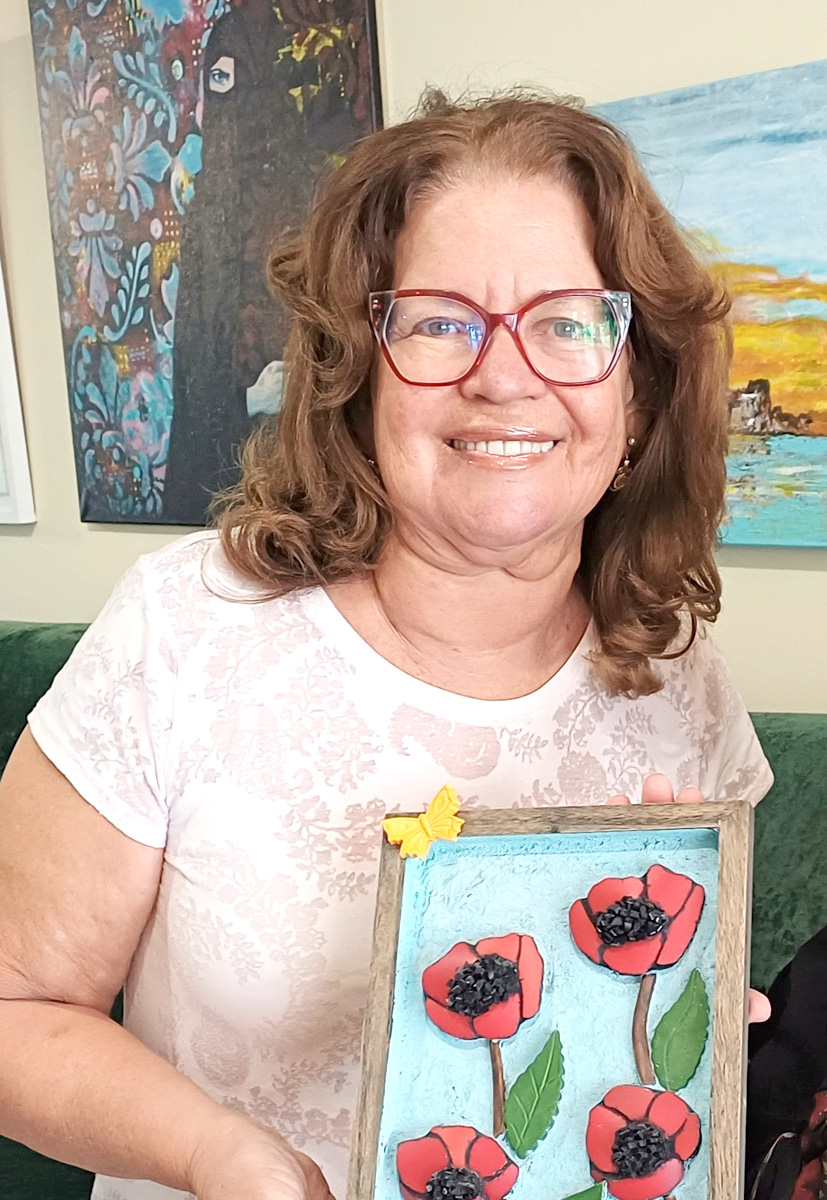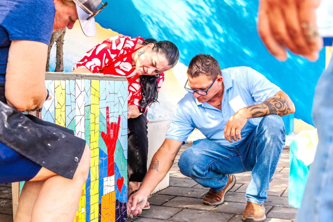 ORANJESTAD (AAN): Artista di mosaico, señora Enrita Werleman, hunto cu su studiantenan ta forma ‘Atelier Mosaic’. Un atelier di mosaico na Santa Cruz 111. Riba invitacion di directora di biblioteca, señora Astrid Britten, Atemosa a cuminsa riba un Obra di Mosaico impresionante. Hunto, empleadonan di biblioteca y studiantenan di Enrita Werleman a decora un mesa y dos banki di beton cu mosaico.