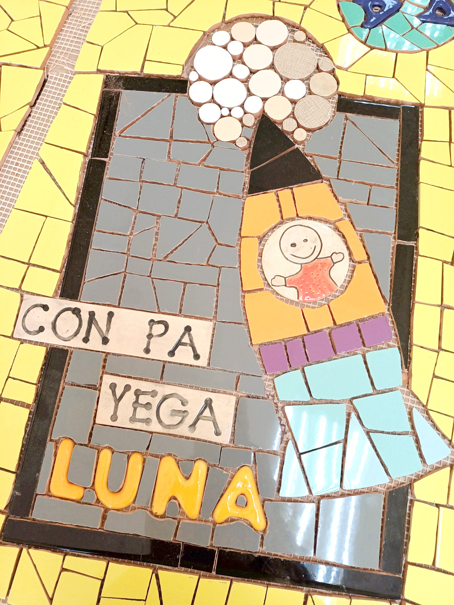 Diseño di e obra aki ta di señora Ria Arrindell-Broeks, ilustrador di buki pa mucha. Señora Ria a diseña mas obra di mosaico y tambe Mosaik Picasiette, esaki ta un tecnica di traha cu pida mosaico di skoter, tayo y kopi. Ria ta ex-docente, full ocupa den su carera artistico.
