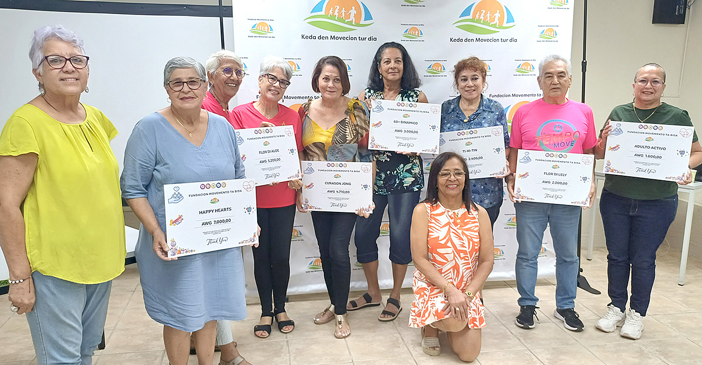esta Happy Heart, Flor di Aloe, Flor di Lely, Honey Bees, Curason Jong, Sigui Move, Ti-Ki-Tin, Adulto Activo, Sunshine 60 Plussers, y 60+ Dinamico haya fondo pa sigui organiza actividad pa nan grupo di Adulto Mayor.