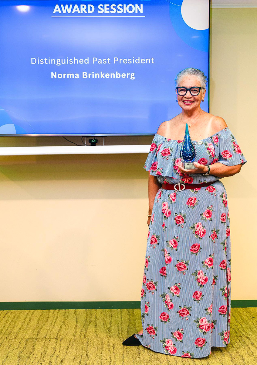 E merdia aki a nomina Norma Brinkenberg-Spellen como Kiwanian of the Year, presenta door di Tessely Koolman-Ranis, kende a reconoce e dedicacion completo y pasion di Norma.