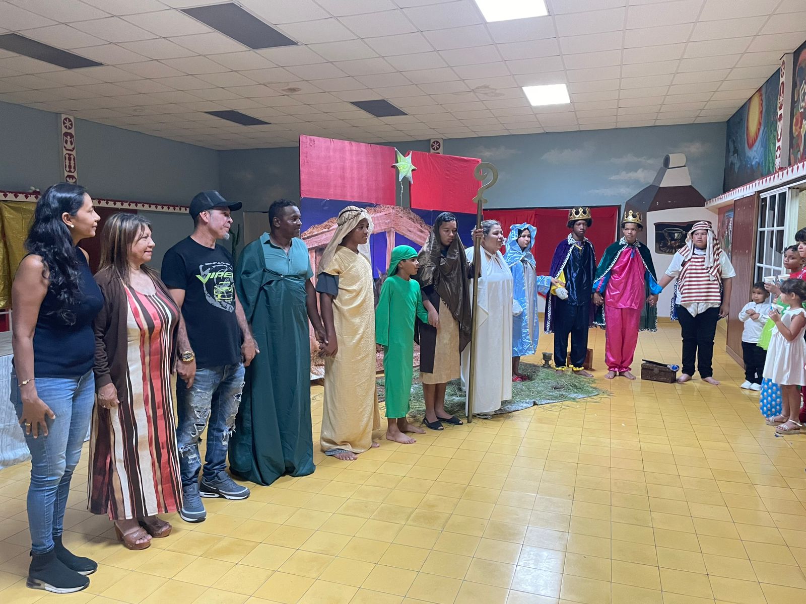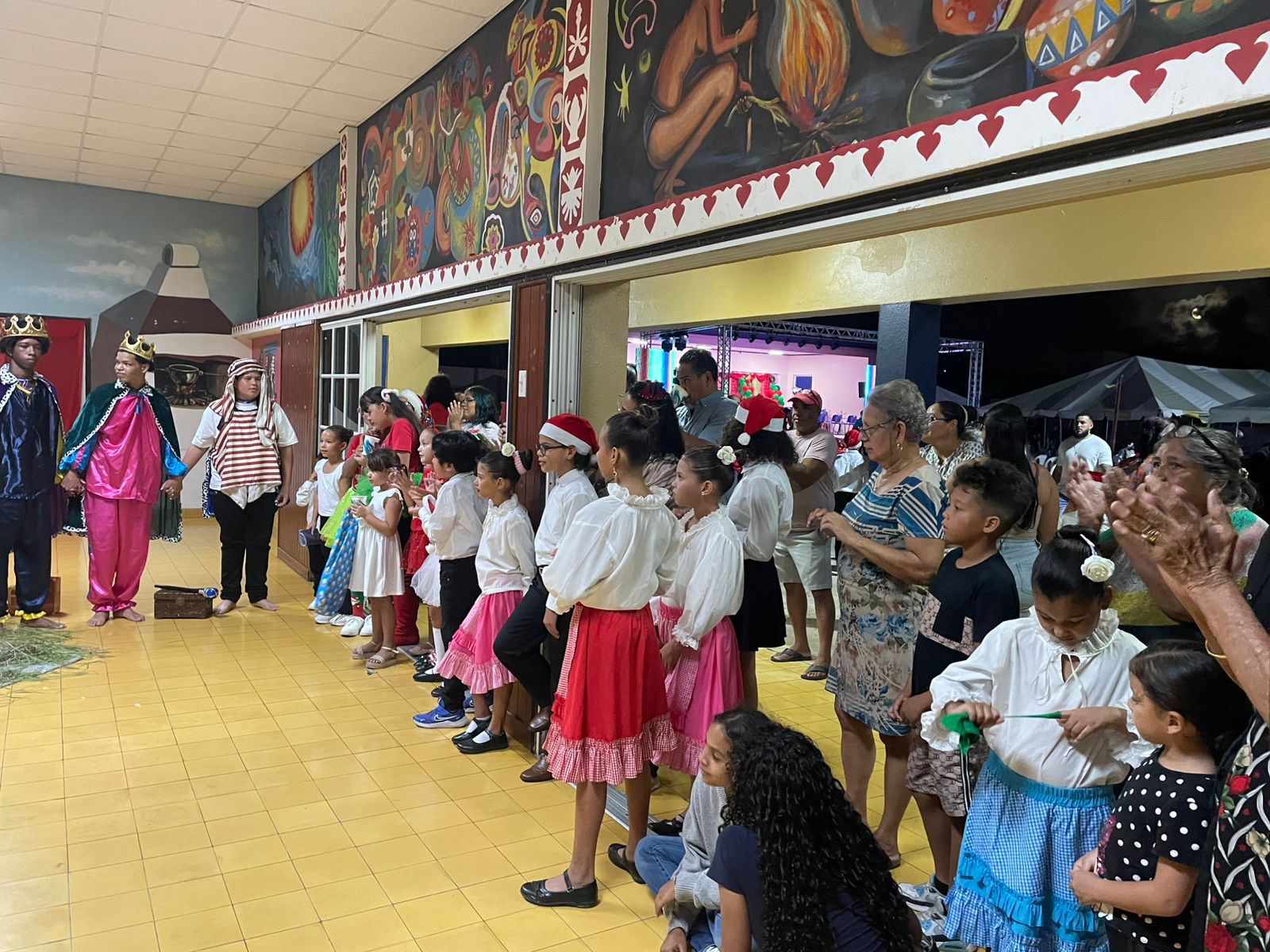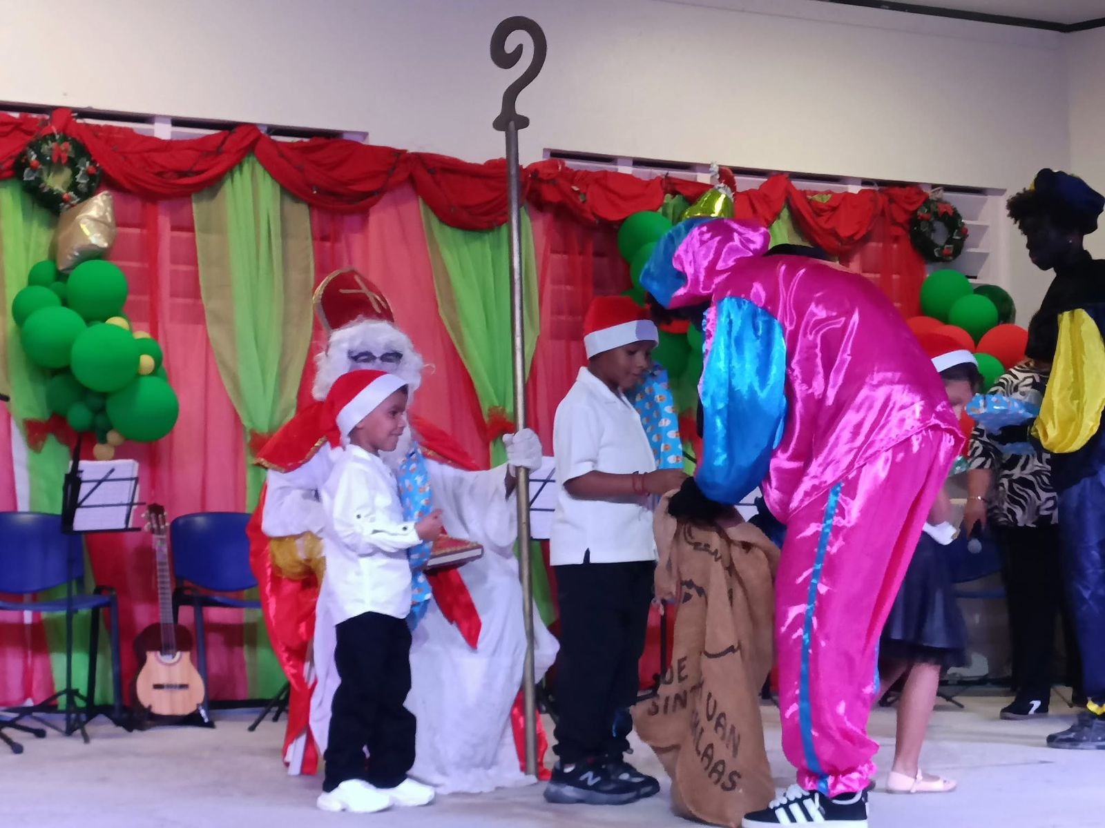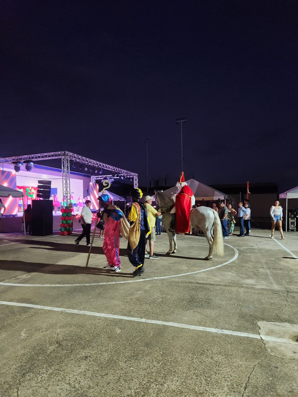 E anochi tabata un fecha hopi mas special, mirando cu dia 5 di December, ta e gran cumpleaños di Sinterklaas, kende a pasa bishita na Centro di Bario Noord, hunto cu su Pietnan, pa saluda tur muchanan bon mucha presente. Mama Claus tambe a haci acto di presencia, agregando alegria y ambiente festivo na e ocasion. Durante e evento, publico a gosa di un dramatisacion di nacemento di nos kerido “Niño Hesus.”
