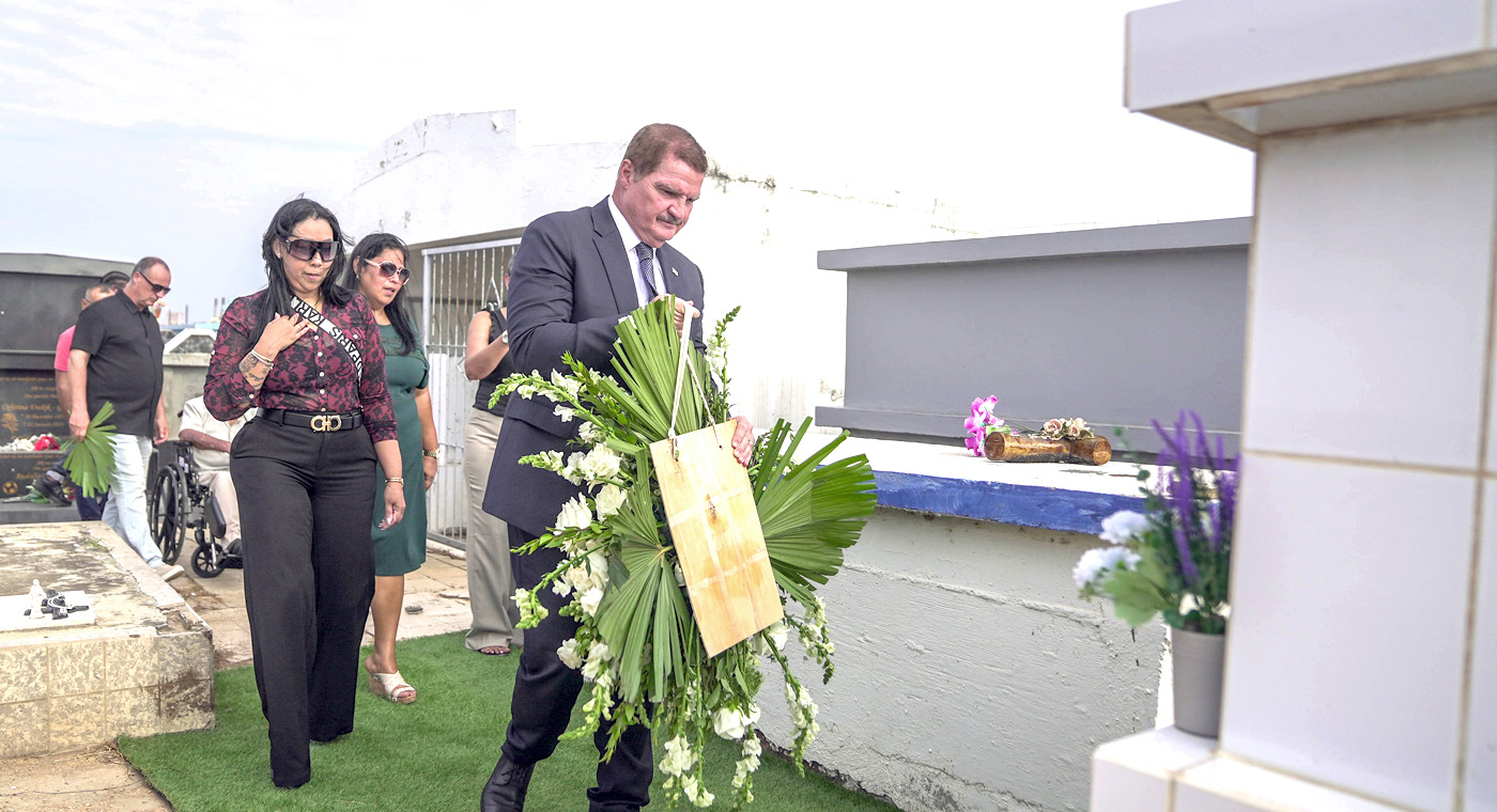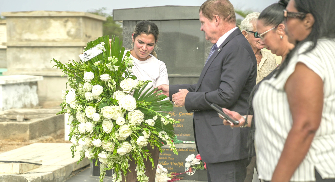 ORANJESTAD (AAN): Diaranson atardi a tuma luga un ceremonia conmemorativo na Santana di Zeewijk, unda Prome Minister Mike Eman a pone un krans na memoria di señor Jacobo Winterdal, mihor conoci como “Coco”, pa honra su fecha natalicio.