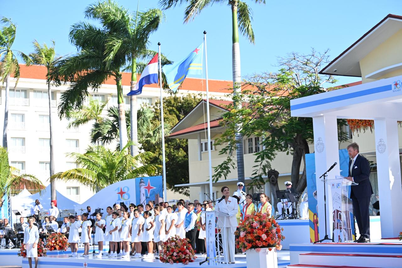 Gobierno di Aruba a ricibi Su Mahestad Rey Willem-Alexander pa un programa oficial cu a tuma lugar na Oranjestad.