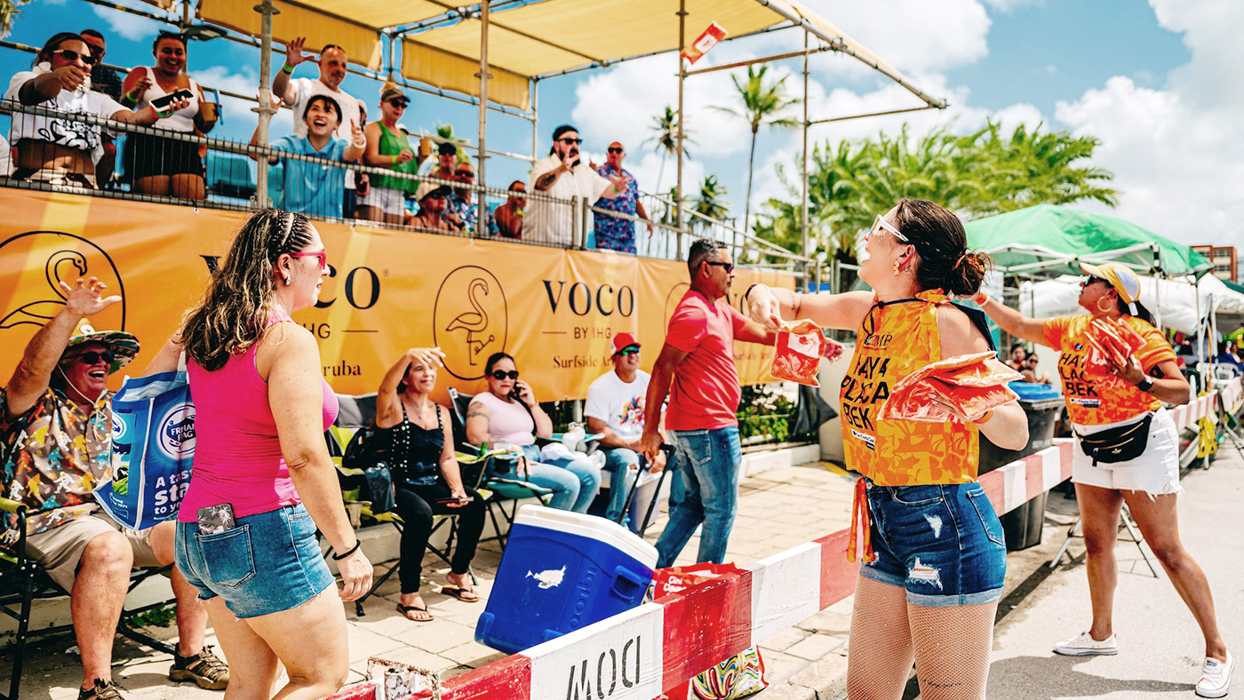 Tanto na San Nicolas como na Oranjestad, por a mira nan cu nan shirt oranje ta pasa acerca comunidad para a lo largo di e ruta.