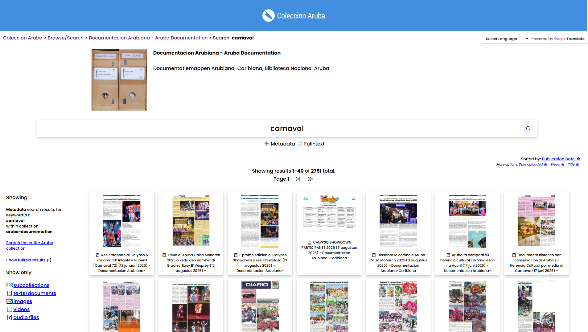Pronto lo pone disponibel un lista di tema y topico di documentacion riba coleccion.aw, mescos cu un lista di titulo di corant y di revista, pa facilita e acceso y buskeda di informacion pa investigador, studiante y publico interesa.
