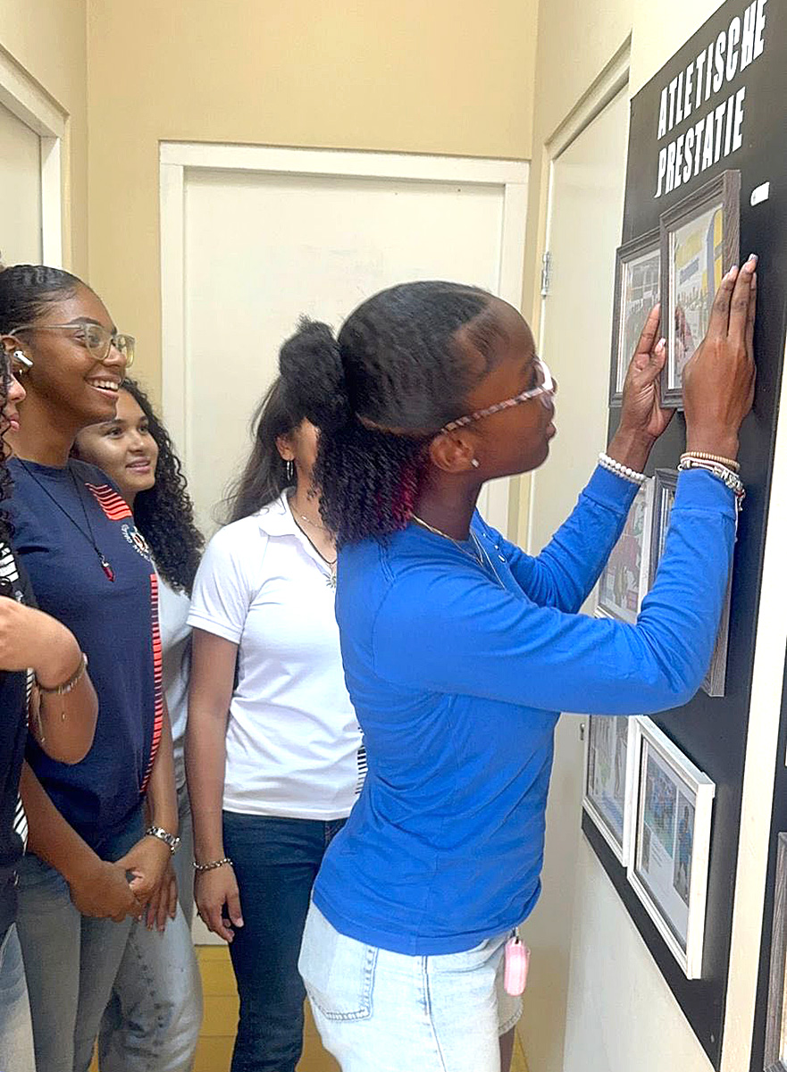Nan a ricibi nan potret, y posteriormente nan mes a haya oportunidad di colga nan potret riba e muraya di prestacion pa honra atletanan cu ta bayendo e scol aki.