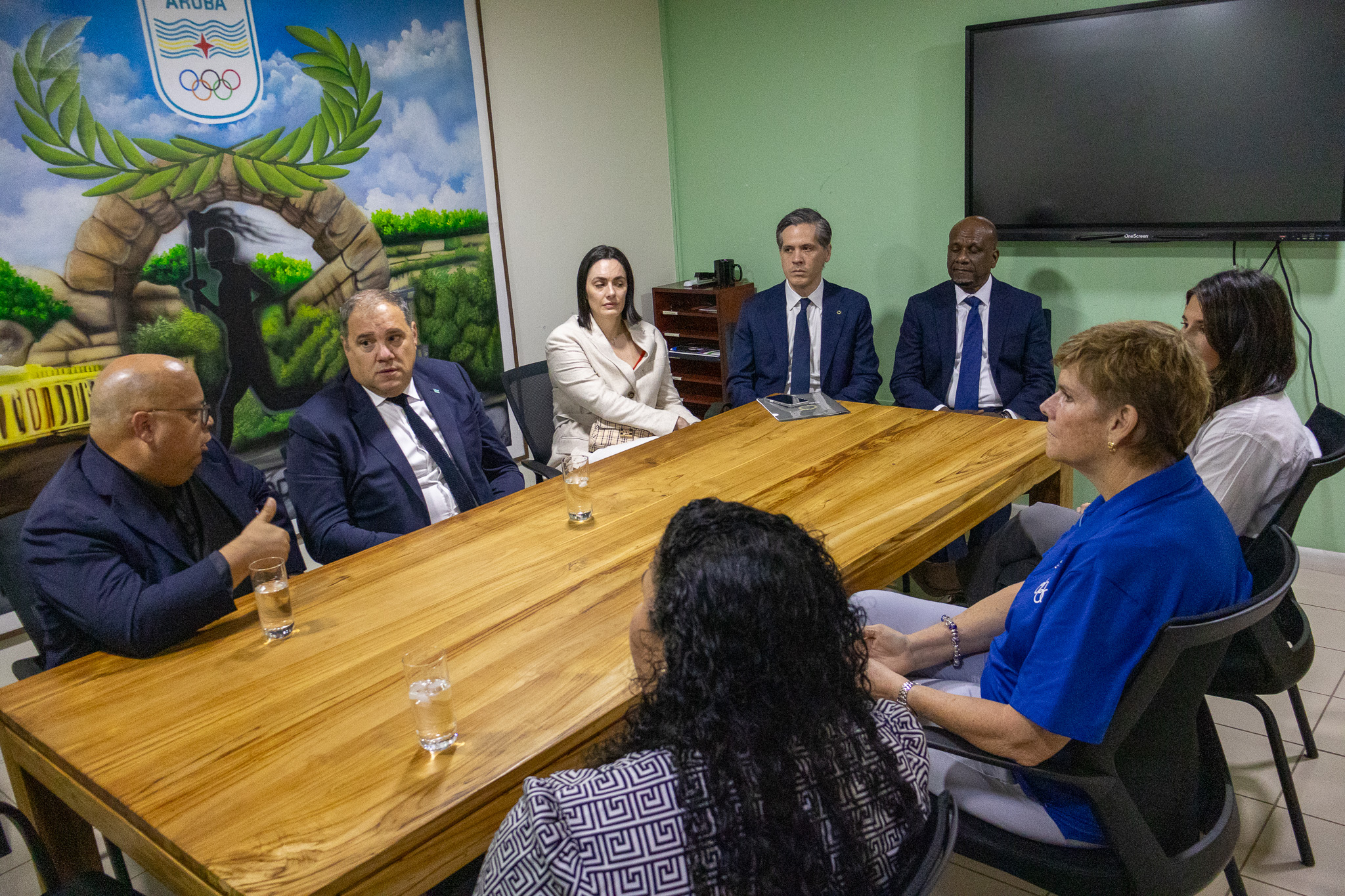 E bishita aki a conta cu presencia di presidente di CONCACAF, Sr. Victor Montagliani y su ekipo, ademas di miembronan di directiva di Arubaanse Voetbal Bond (AVB) cu presidente Randolf Lacle liderando e delegacion.