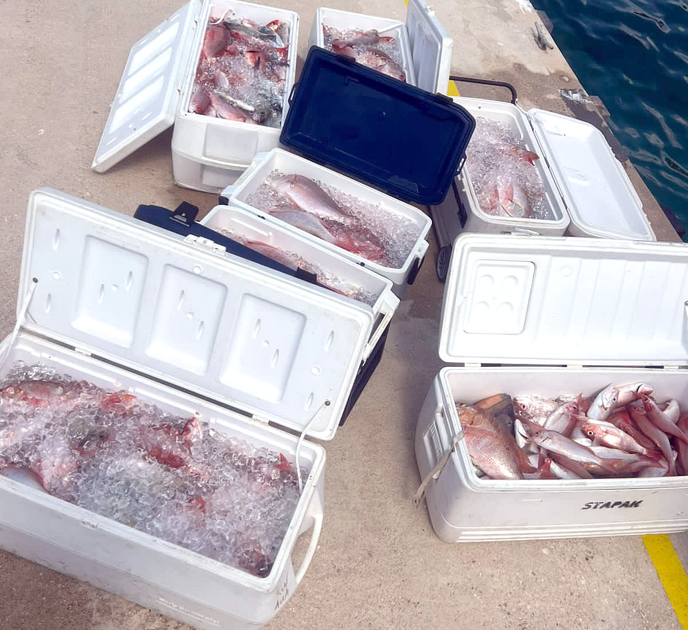 Pa motibo di e infraccion di a drenta awa di Aruba, Wardacosta a confisca tur instrumento di pesca incluyendo aproximadamente 400 kilo di pisca.