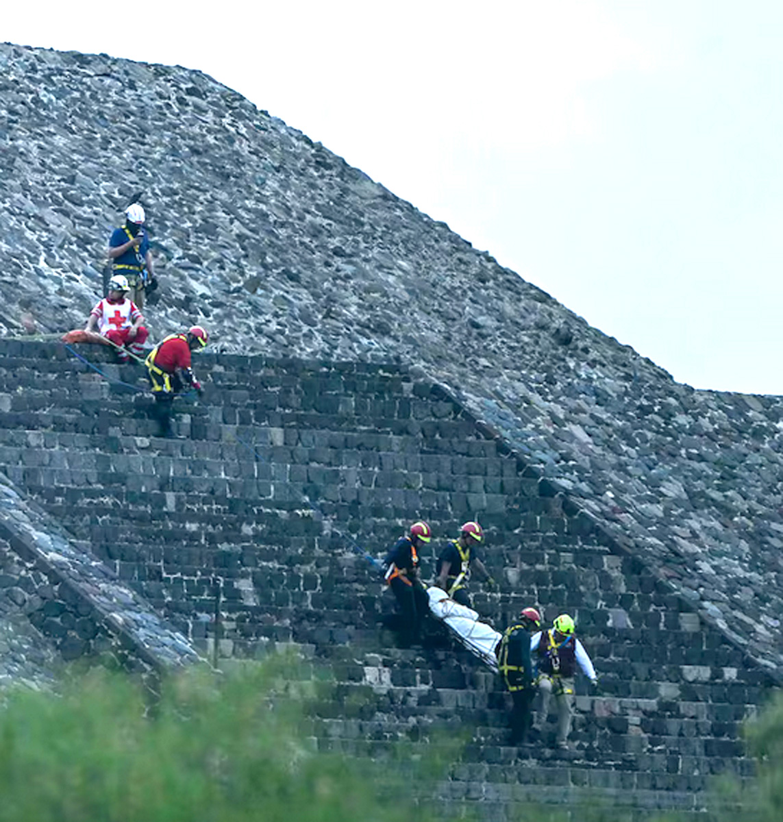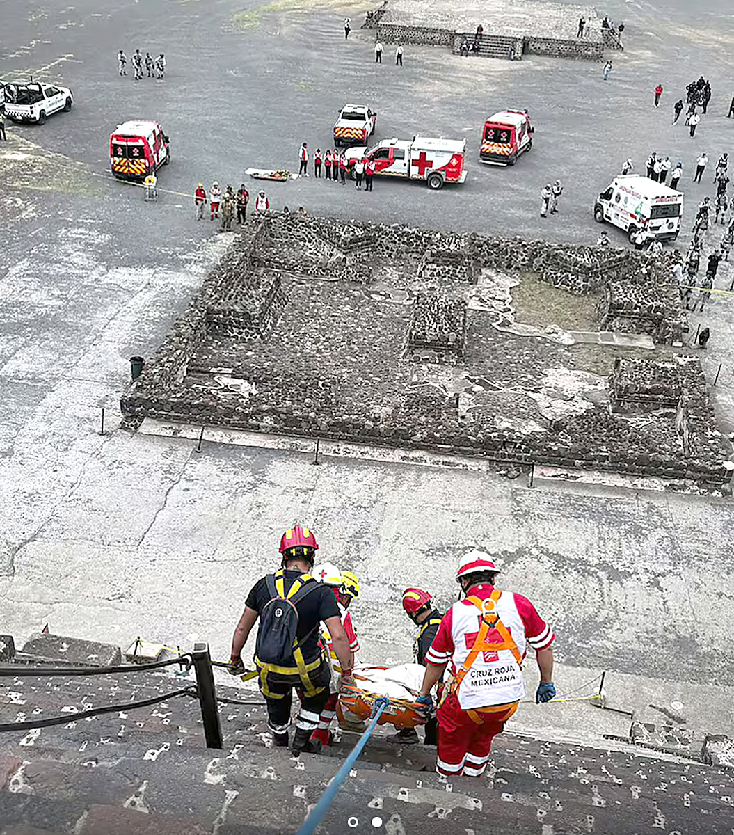 ORANJESTAD (AAN): Un situacion di panico a presente su mes na e famoso piramidnan di Teotihuacán, cu ta situa como 30 km Noordoost di Mexico City. Un homber a subi mas na halto riba e piramid aki, y cu un arma di candela a cuminza tira pa loco.