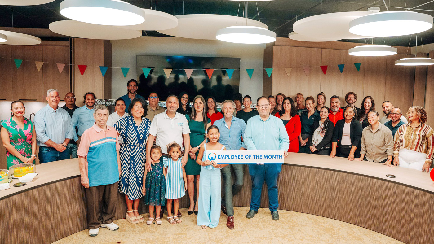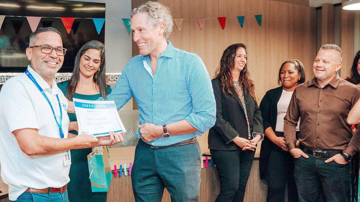 no a sospecha net nada ora siman pasa el a drenta un supuesto reunion di ‘beleid’. El a scucha gritonan di ‘surprise’ pero te ora el a mira su famia para eynan el a realisa cu ta pe mes nan a grita y a organiza e momento festivo aki. Coleganan di diferente departamento y miembronan di Hunta di Directiva a bini hunto pa celebra e hecho cu Daniel Gonçalves a bira e prome empleado di luna di e aña aki. Diferente colega di directiva a hiba palabra tocante su nominacion pa sali empleado di luna di januari 2026.