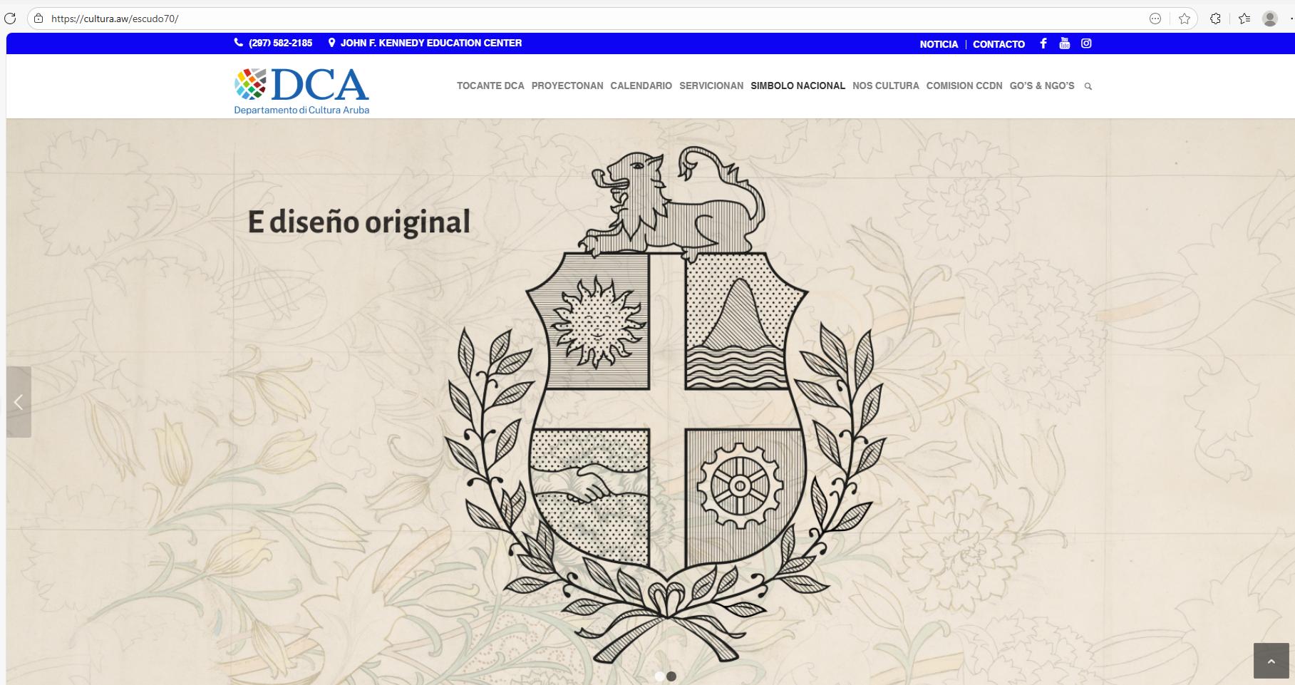E escudo di Aruba ta un simbolo di orguyo, union y historia — un refleho di nos balornan, nos identidad y nos progreso. DCA ta kere firmemente cu conocemento y aprecio pa nos simbolonan nacional ta fortifica e sentido di pertenencia y identidad cultural, particularmente den nos hubentud.