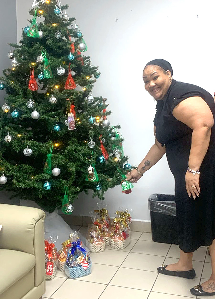 Directora Jane Hooft-Bueno tabata yama cada persona bay dilanti pa asina busca nan regalo colga den e bunita Kerstboom di scol. Di e forma aki a gradici cada uno pa nan dedicacion, amor, y pasenshi sin fin ta dunando les aki.