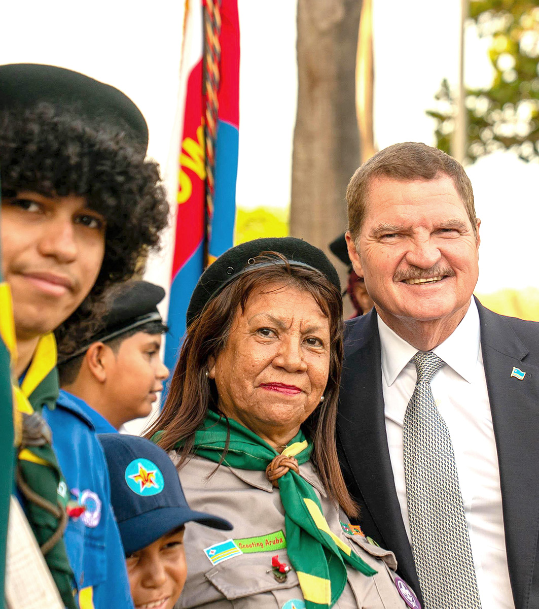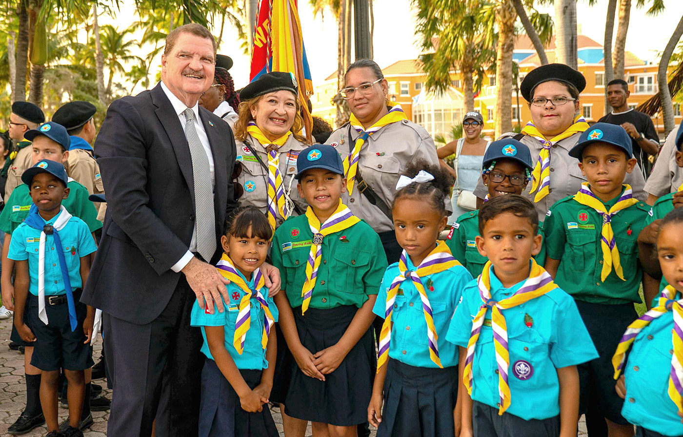E trabao di Scouting Aruba, cu hopi disciplina y dedicacion, ta refleha precisamente loke nos pais tin mester awe mas cu nunca. Un sociedad unda nos ta mira otro, sinti otro y preocupa pa otro. E balornan aki stima pa nos pais, amor pa nos prohimo y fe den nos Creador ta keda planta den curason di cada miembro, di chikito te grandi.