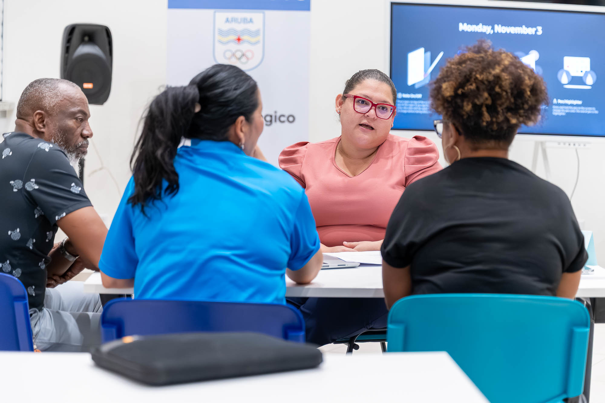 unda tur federacion miembro di Comite Olimpico Arubano (COA) a haya un oportunidad pa intercambia informacion y ideanan cu otro federacionnan presente ademas di algun docente cu a participa den e curso. E sesion aki tabata e ultimo presencial prome cu e entrega final, unda tin como tarea pa entrena sea un “strategic framework” of un plan strategico.