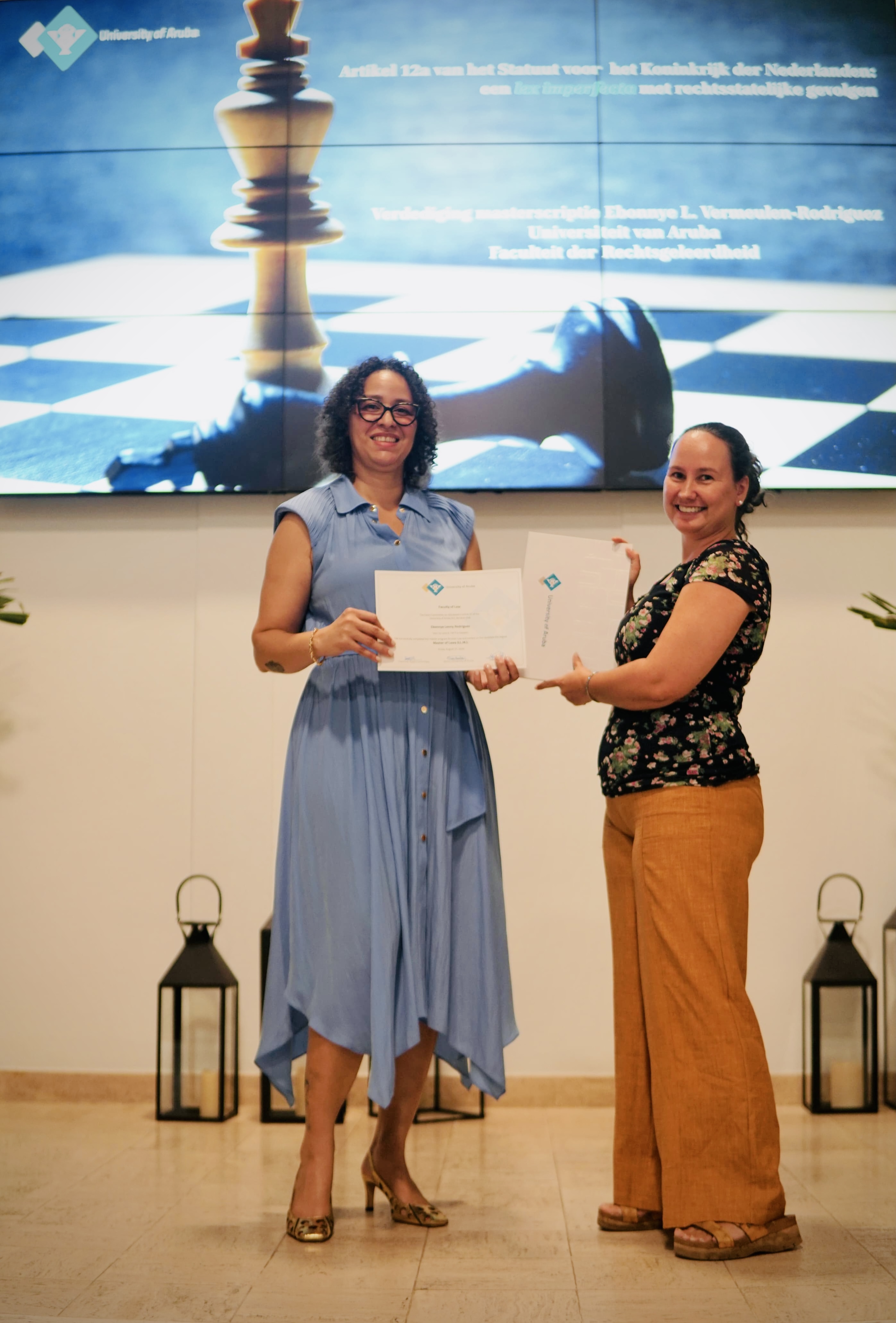 ORANJESTAD (AAN): Tabata riba Diamars 21 di October, 2025, a gradua na e Facultad di Ley na Universidad di Aruba, Ebonnye L. Rodriguez.