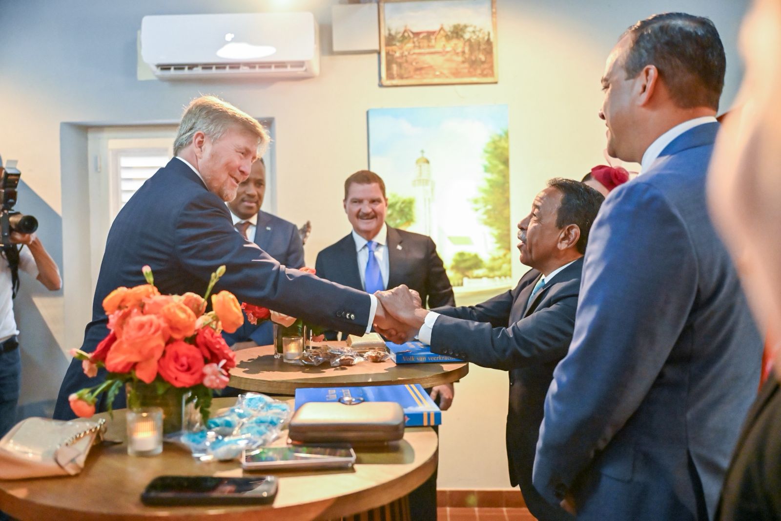 E encuentro aki a reafirma e balor di dialogo y cooperacion entre e institucionnan democratico di Aruba y e Reino Hulandes. E presencia di Su Mahestad no solamente a fortalece e lasonan den Reino, sino tambe a duna un nificacion special na e celebracionnan historico di nos isla.