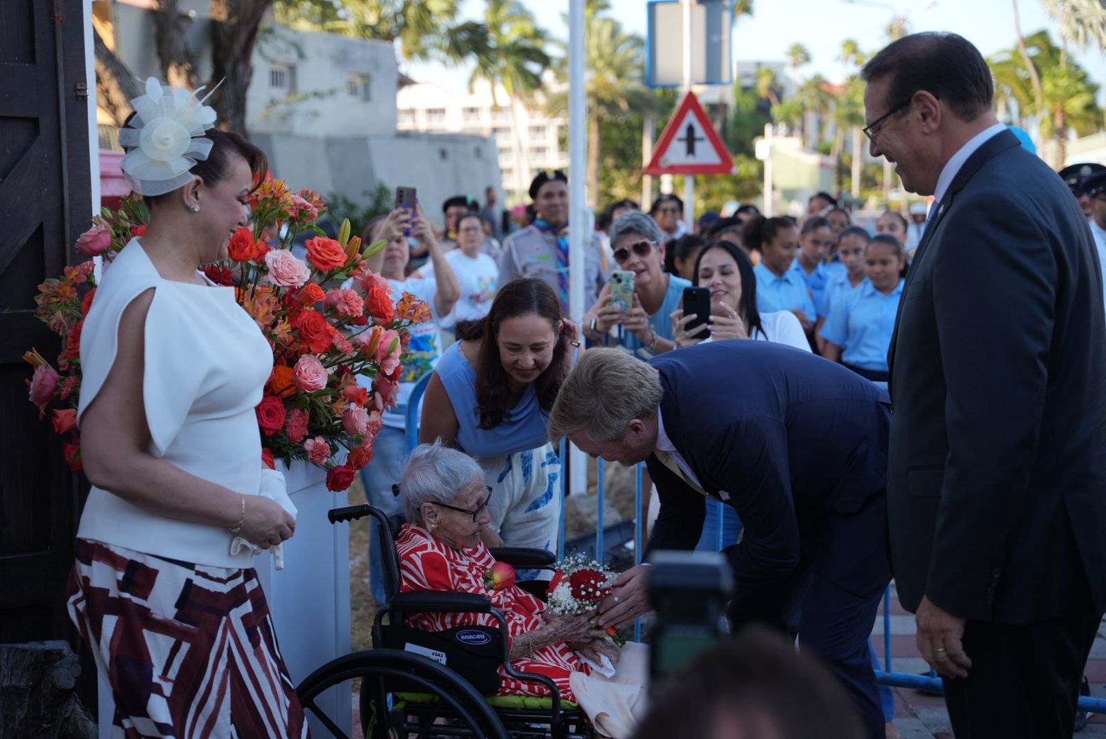 Na entrada di Willem III Toren, e rey a saluda señora Ciria Quant, kende ta celebrando su di 100 cumpleaños riba 18 di maart. Esaki tabata un momento simbolico den cuadro di nos celebracionnan nacional.
