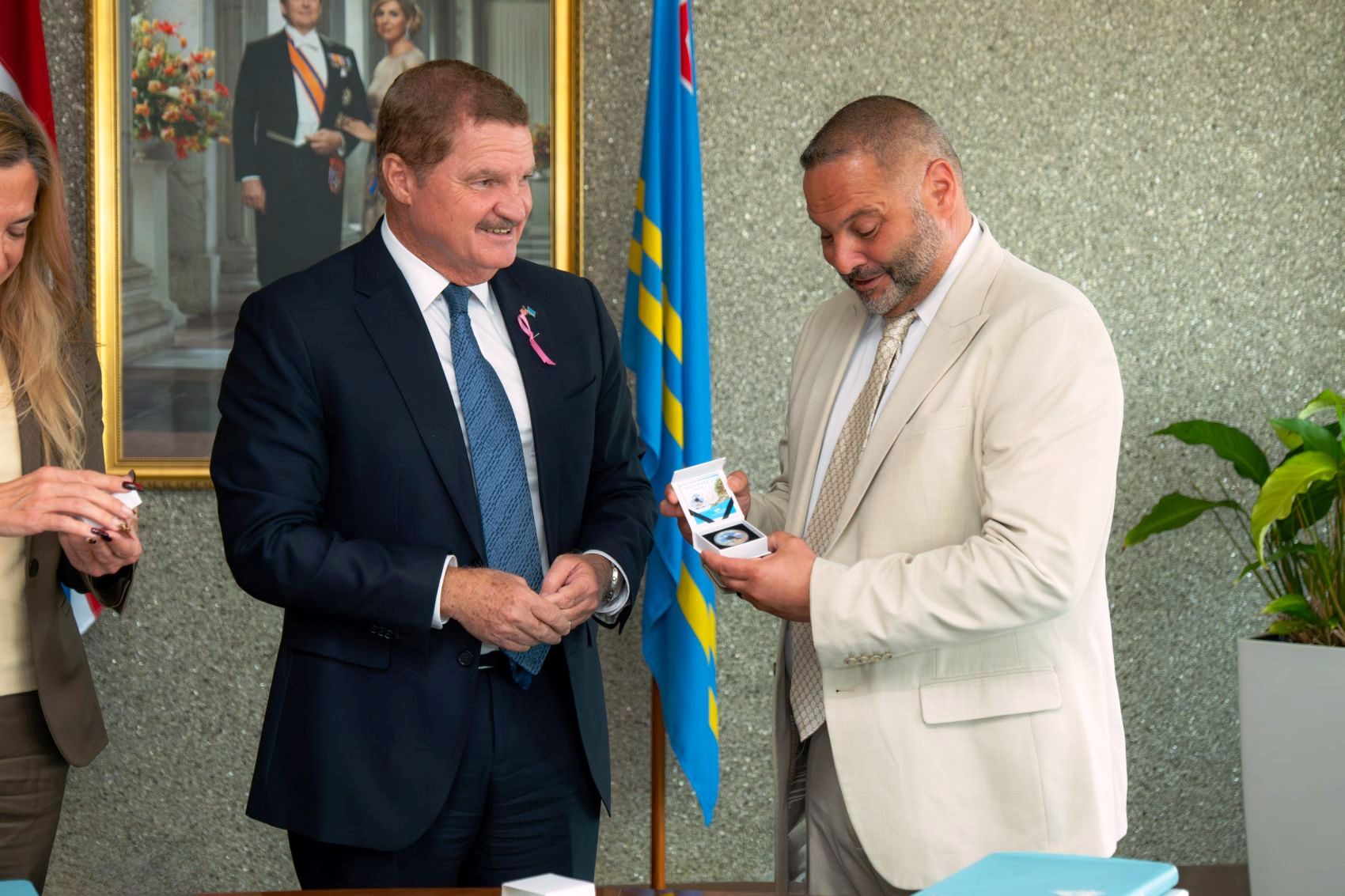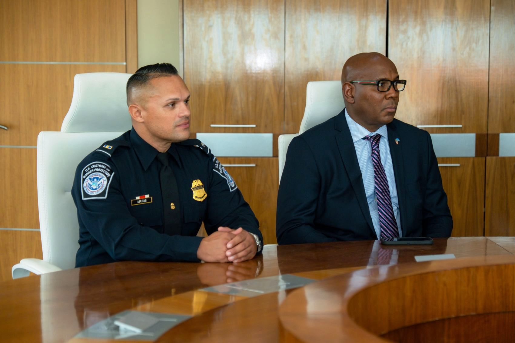 Tambe presente na Bestuurskantoor tabata Diane J. Sabatino, Executive Assistant Commissioner di Office of Field Operations (OFO) di CBP. Un placer absoluto manera semper pa ta di bishita na Aruba y un tremendo aliansa entre Merca y Aruba, muy particularmente cu e U.S. Customs and Border Protection, cual tin un historia profundo y duradero.